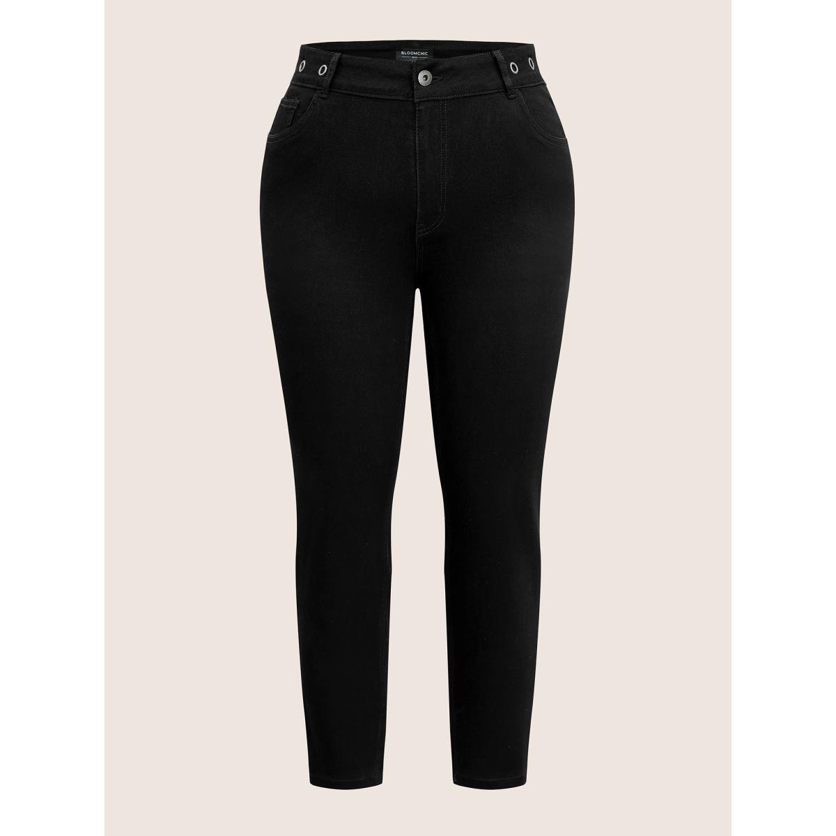 Plus Size High Stretch Skinny Metal Detail Jeans Women Black Casual Plain Plain High stretch Pocket Jeans BloomChic 14/1X