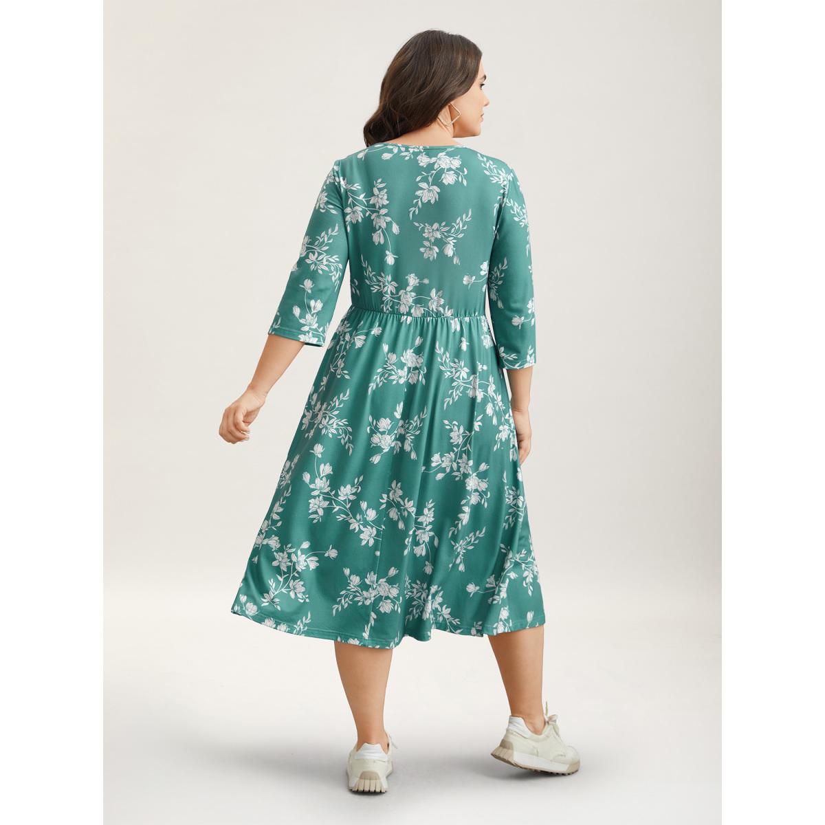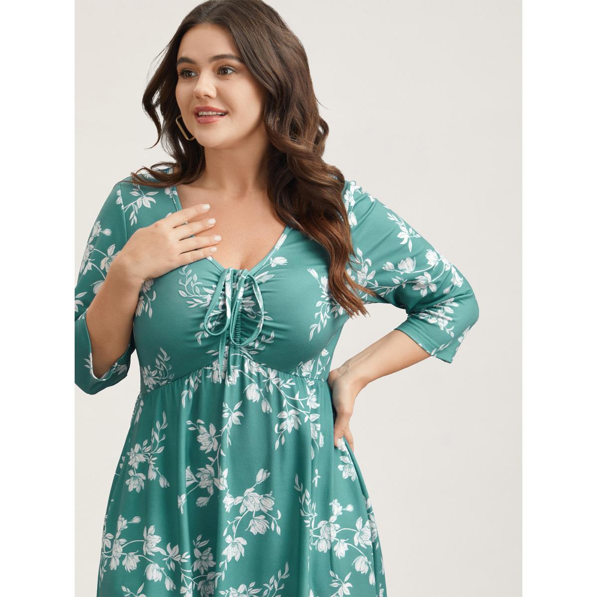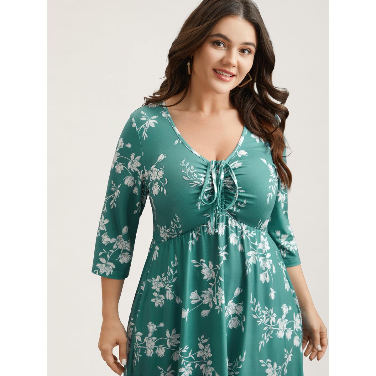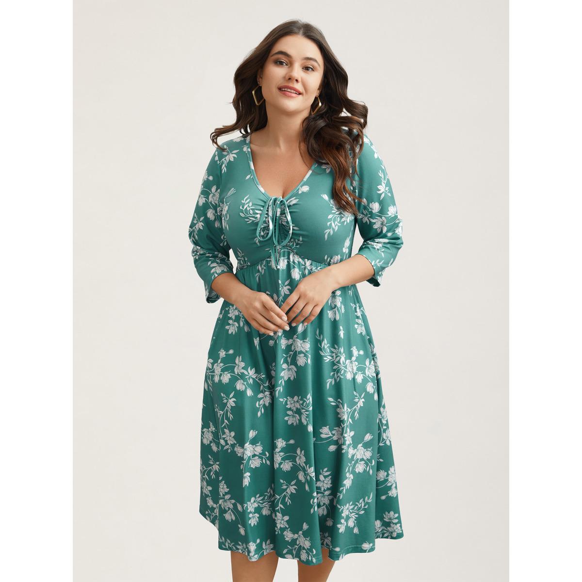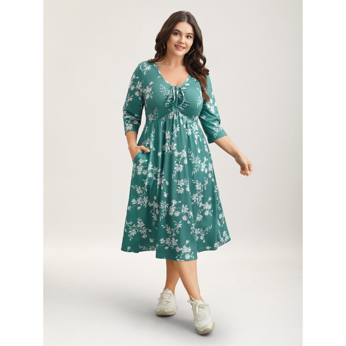 Plus Size Feels like Spring Printed Drawstring Midi Dress Greenbean Women Casual Gathered Knit Dresses Bloomchic 14-16/1X