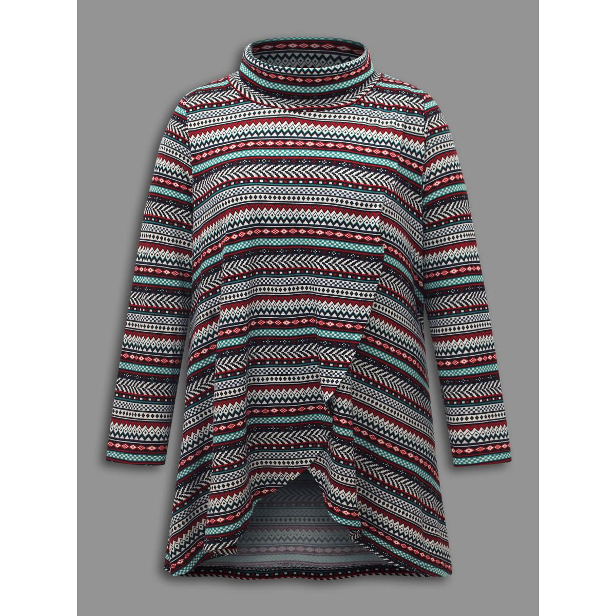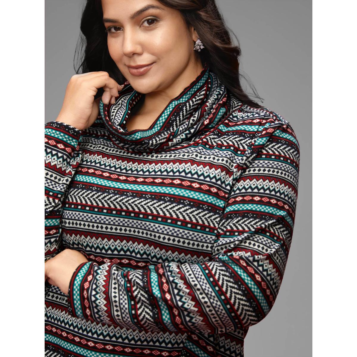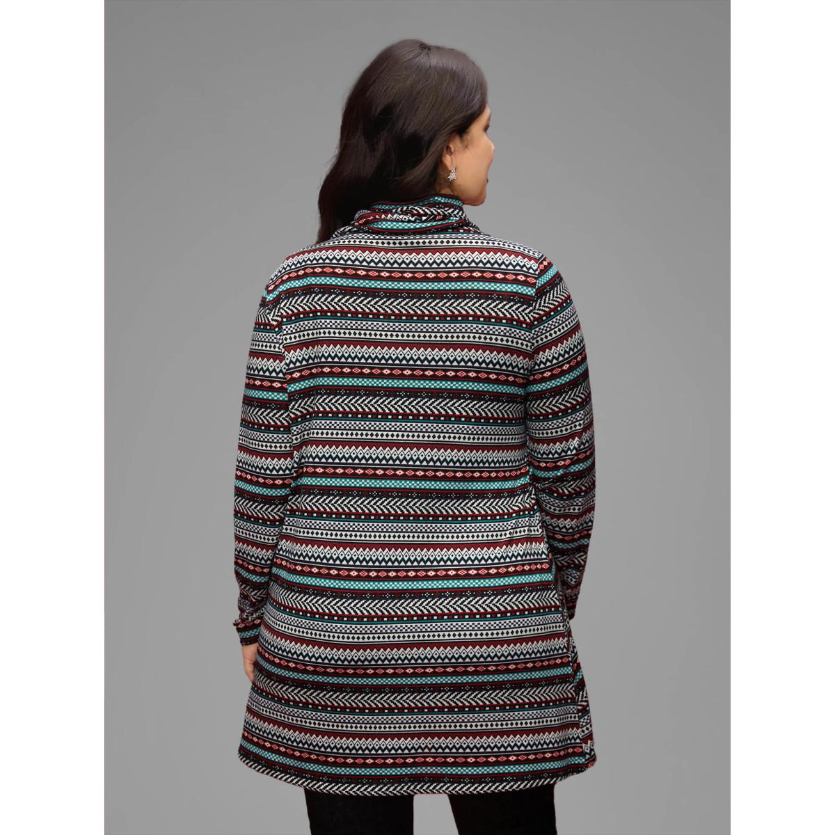 Plus Size Festive Striped Wrap Tee Multicolor Women Casual Overlapping Ruffled collar Loose Everyday T-shirts BloomChic 26/4X