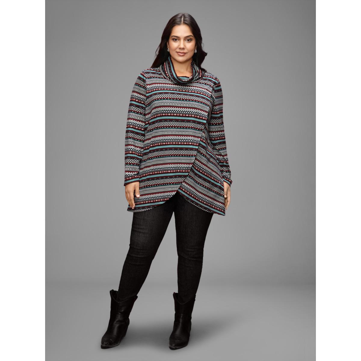Plus Size Festive Striped Wrap Tee Multicolor Women Casual Overlapping Ruffled collar Loose Everyday T-shirts BloomChic 26/4X Product Image