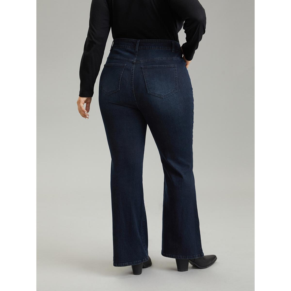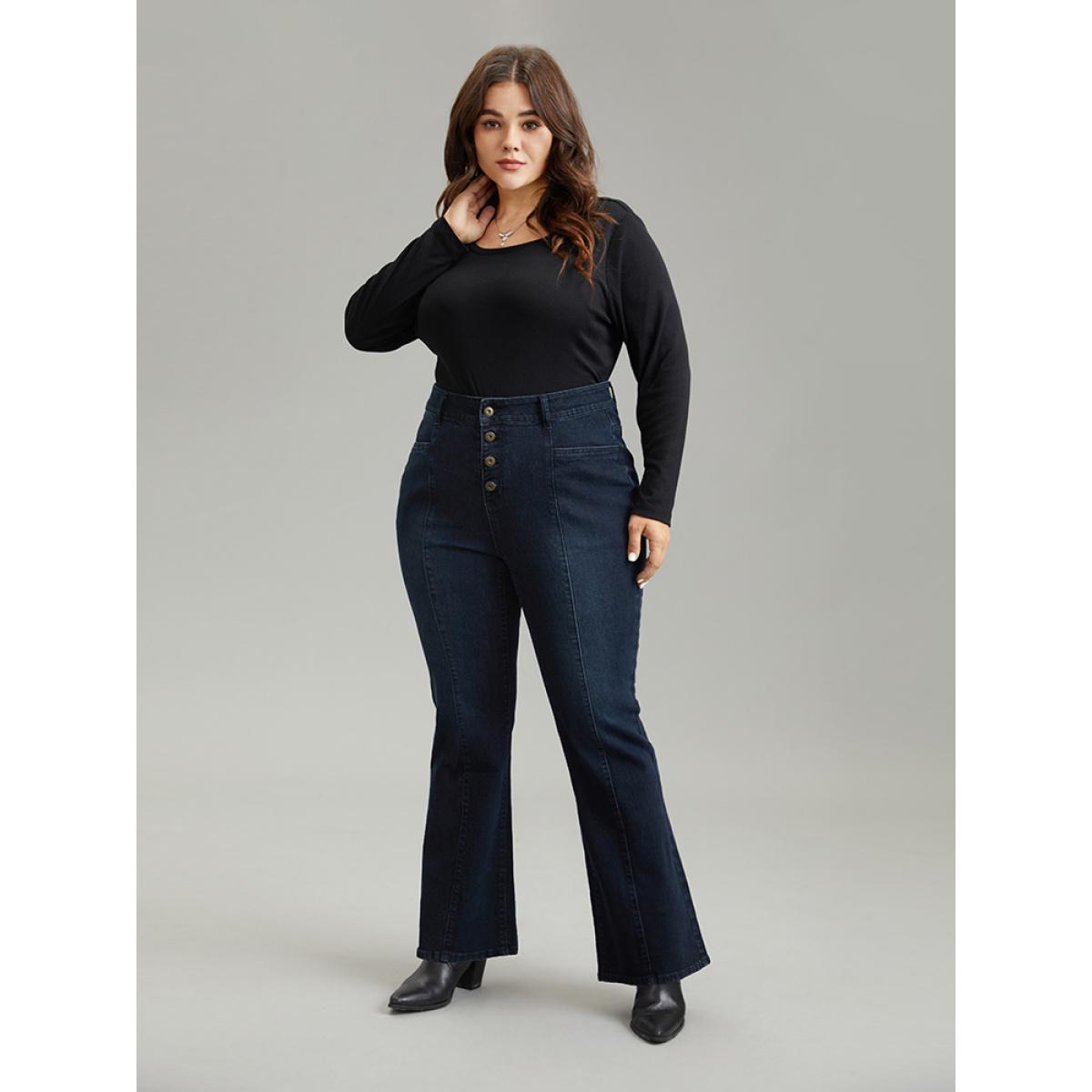 Plus Size Flare Leg Button Fly Seam Detail Moderately Stretchy Jeans Women Midnight Casual Plain Plain Medium stretch Pocket Jeans BloomChic 18/2X