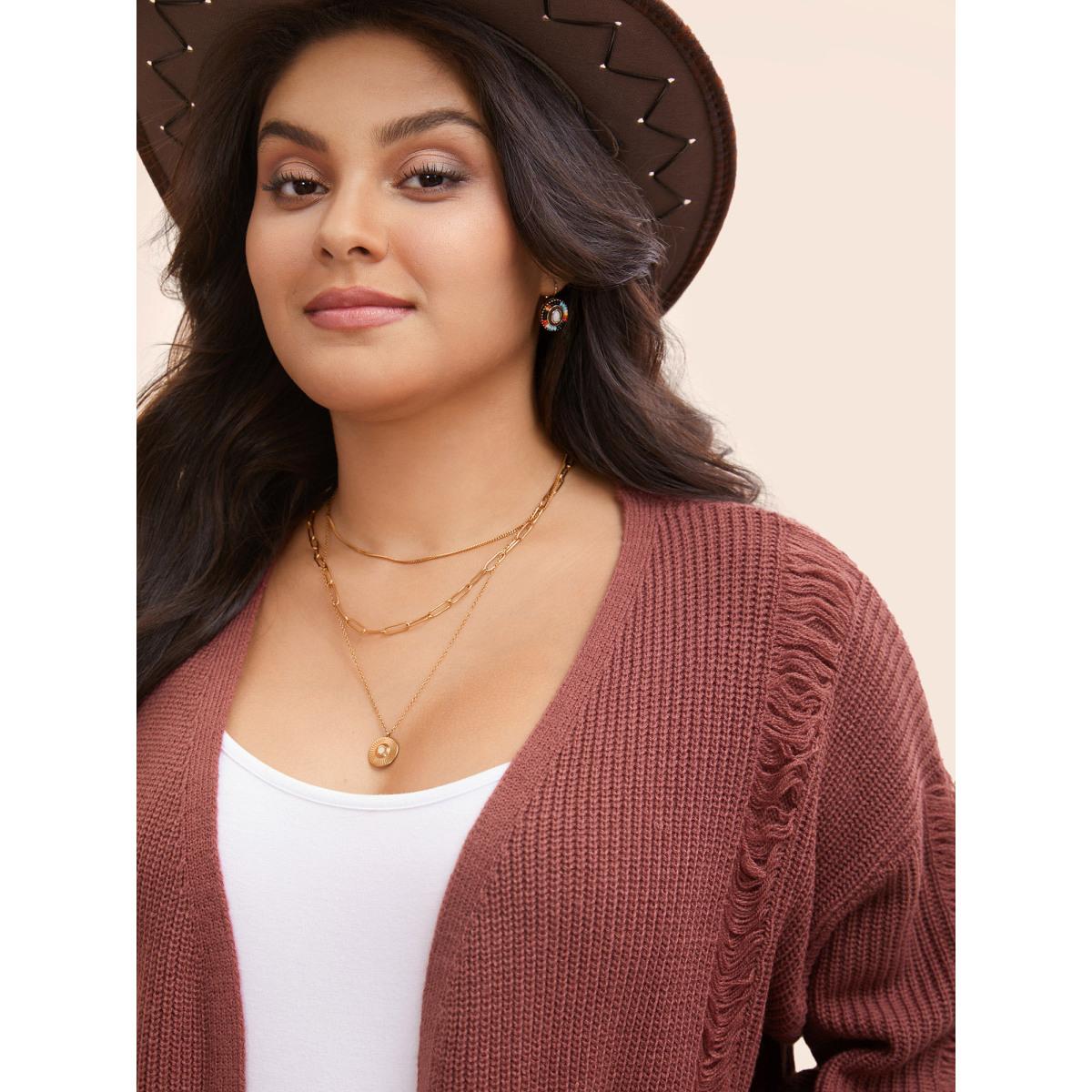 Plus Size Plain Pointelle Knit Cut Out Pocket Open Front Mid Long Cardigan Burgundy Women Casual Loose Long Sleeve Dailywear Cardigans BloomChic 14-16/1X