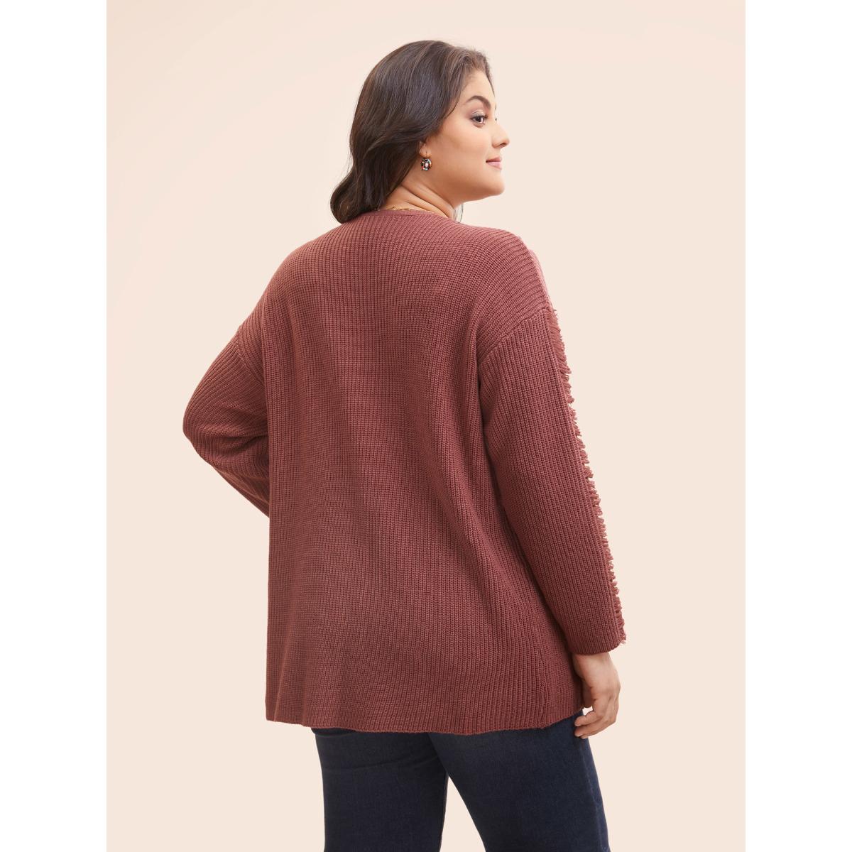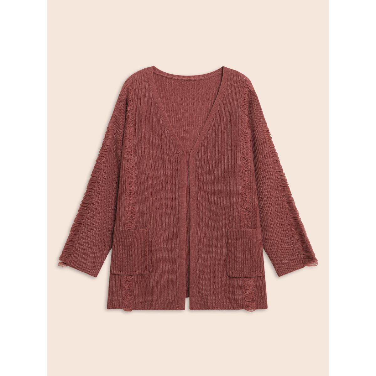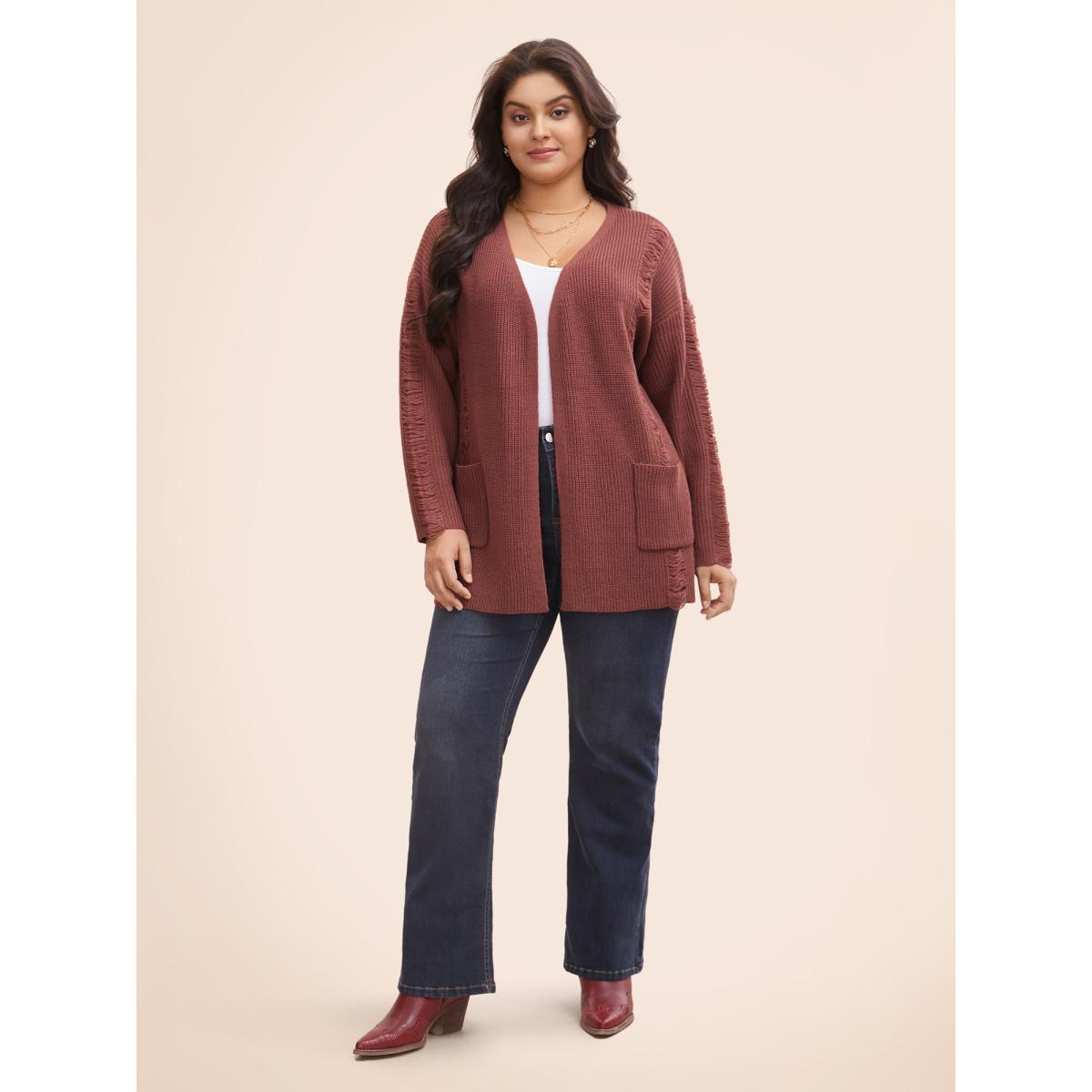 Plus Size Plisse Patched Pocket Curved Hem Open Front Cardigan Burgundy Women Casual Loose Long Sleeve Everyday Cardigans BloomChic 28/5X