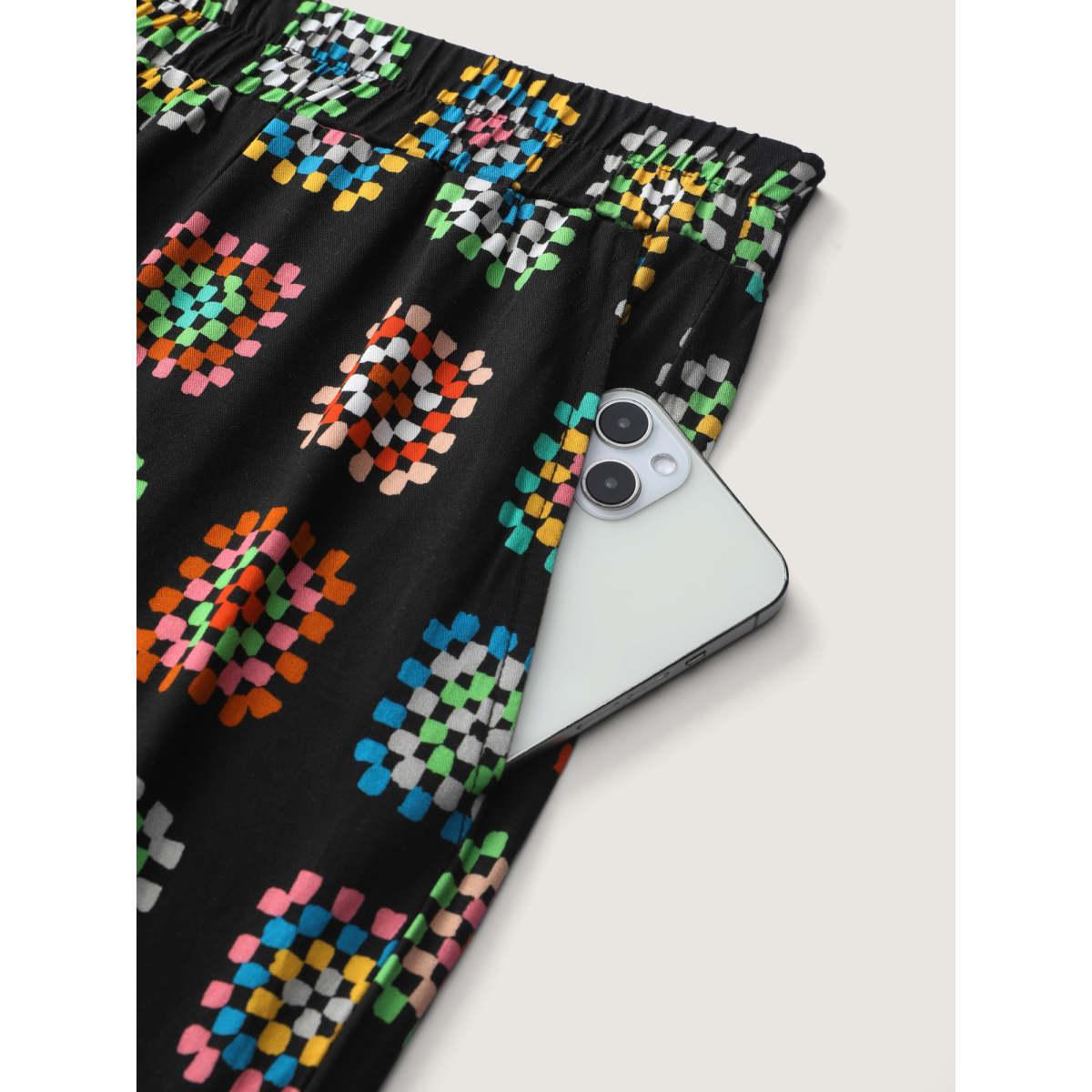 Plus Size Floral Collage Colorful Wide-Leg Pants Women Multicolor Boho Loose Mid Rise Vacation Pants BloomChic 30/6X