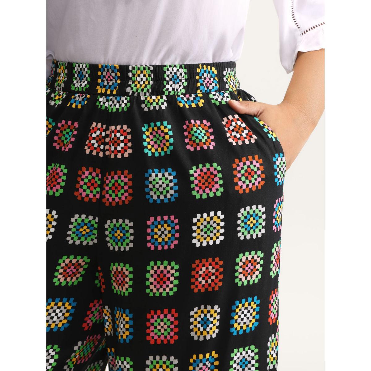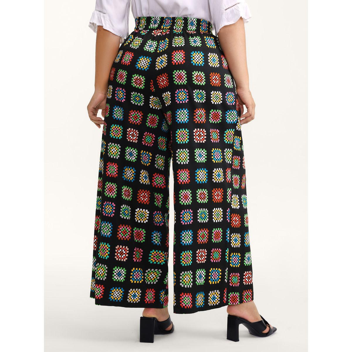 Plus Size Groovy Floral Print Wide-Leg Pants Women Multicolor Elegant Wide Leg Mid Rise Everyday-Elegant Pants BloomChic 22-24/3X