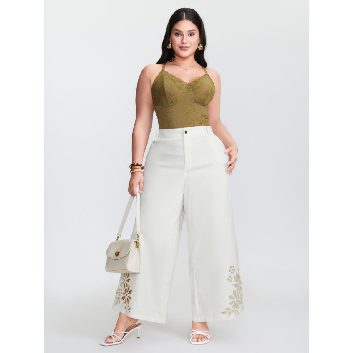 Plus Size Floral Cutwork Embroidered Hem Pants Women WhiteSmoke Romantic Loose High Rise Elegant Pants BloomChic 28/5X Product Image