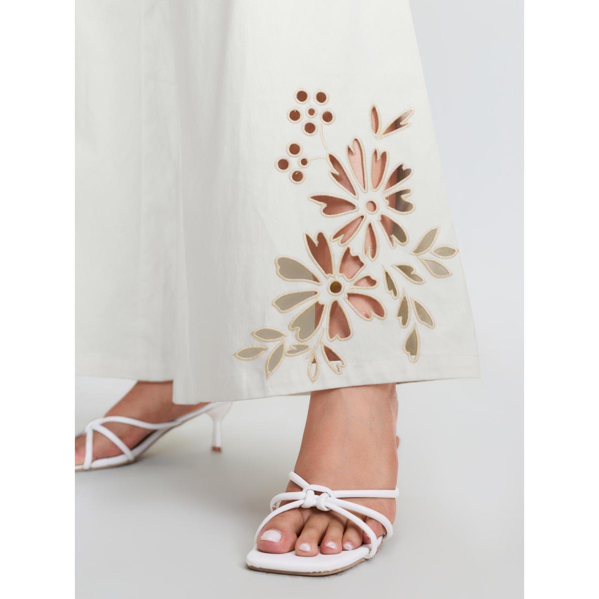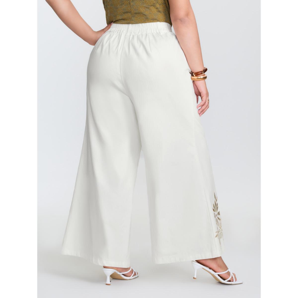 Plus Size Floral Cutwork Embroidered Hem Pants Women WhiteSmoke Romantic Loose High Rise Elegant Pants BloomChic 28/5X