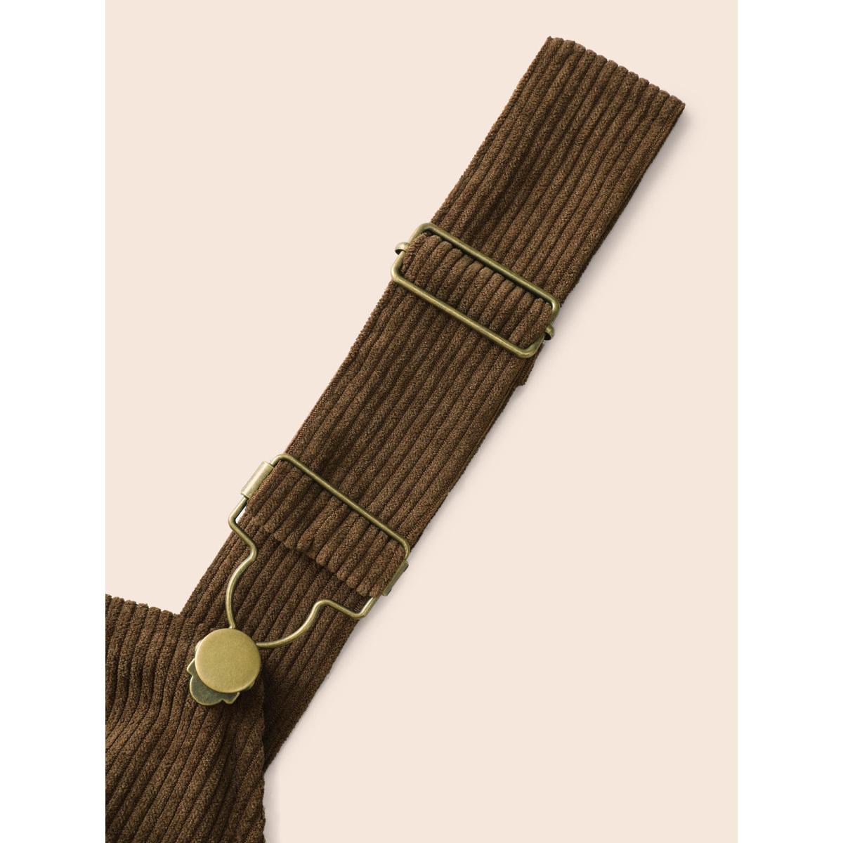 Plus Size Plain Corduroy Patched Pocket Overall Dress DarkBrown Women Casual Plain Spaghetti Strap Sleeveless Curvy Midi Dress BloomChic 30/6X