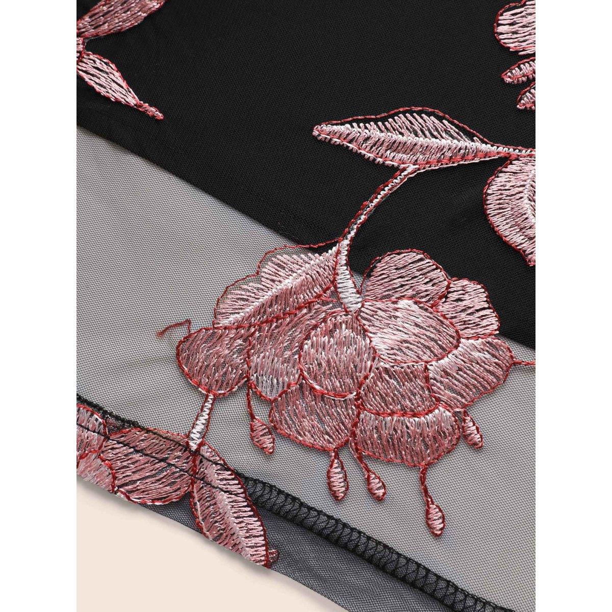 Plus Size Round Neck Floral Embroidered Dress Black Women Cocktail Texture Party Curvy Bloomchic 18-20/2X