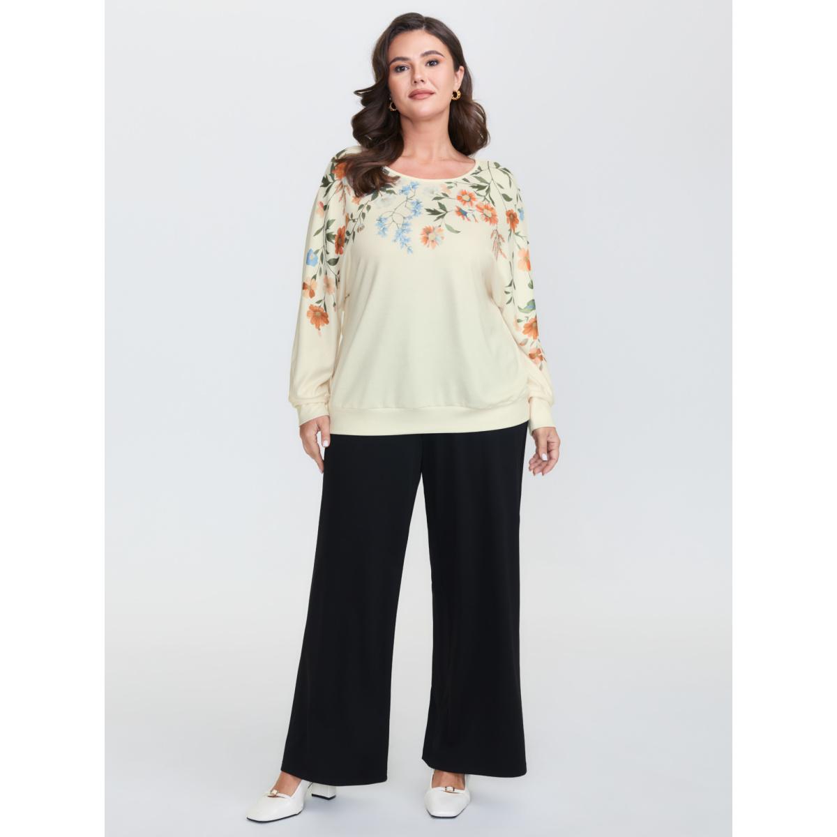 Plus Size Floral Embroidery Cozy Stretchy Hem T-Shirt Ivory Women Timeless Round Neck Elegant T-shirts BloomChic 30/6X