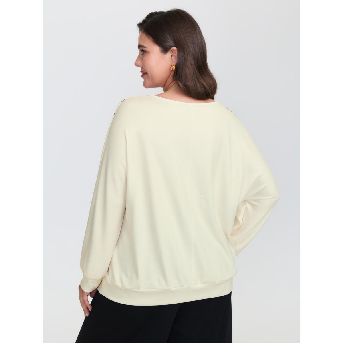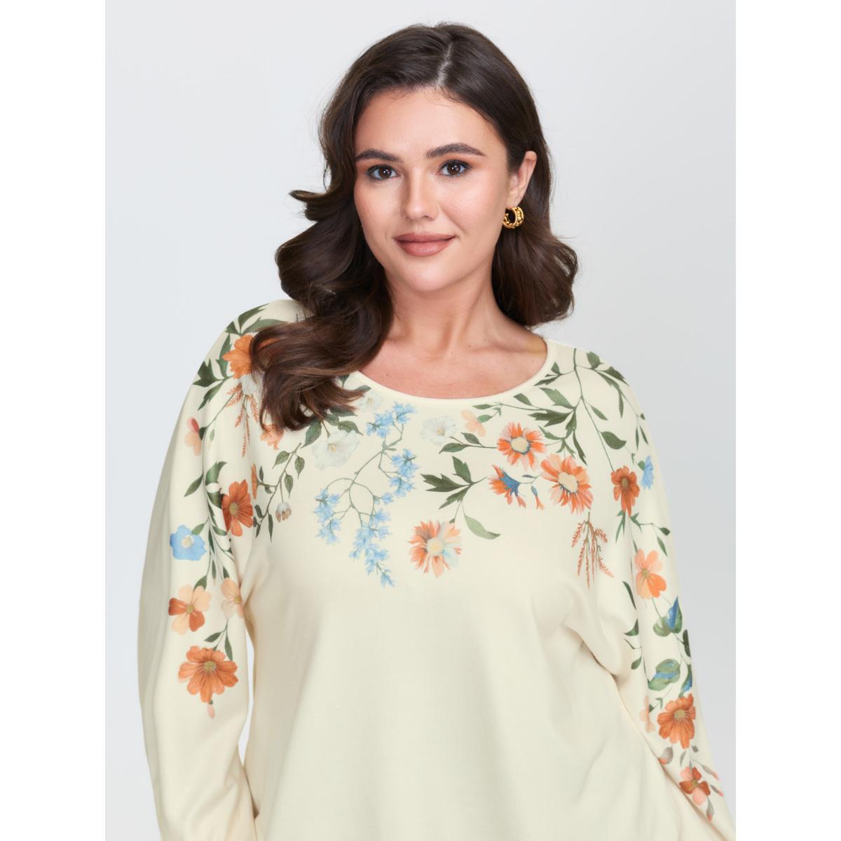 Plus Size Floral Embroidery Cozy Stretchy Hem T-Shirt Ivory Women Timeless Round Neck Elegant T-shirts BloomChic 30/6X Product Image