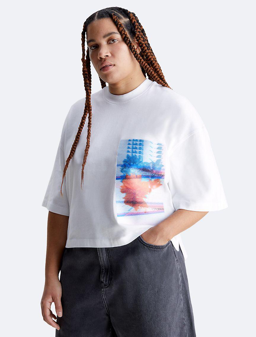 A short sleeve t-shirt featuring a printed floral graphic at the front. Made with a crewneck and drop shoulders for a relaxed fit. Finished with a Calvin Klein logo detail at the back.