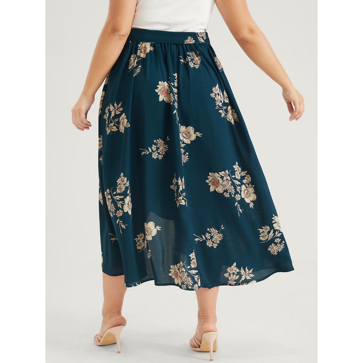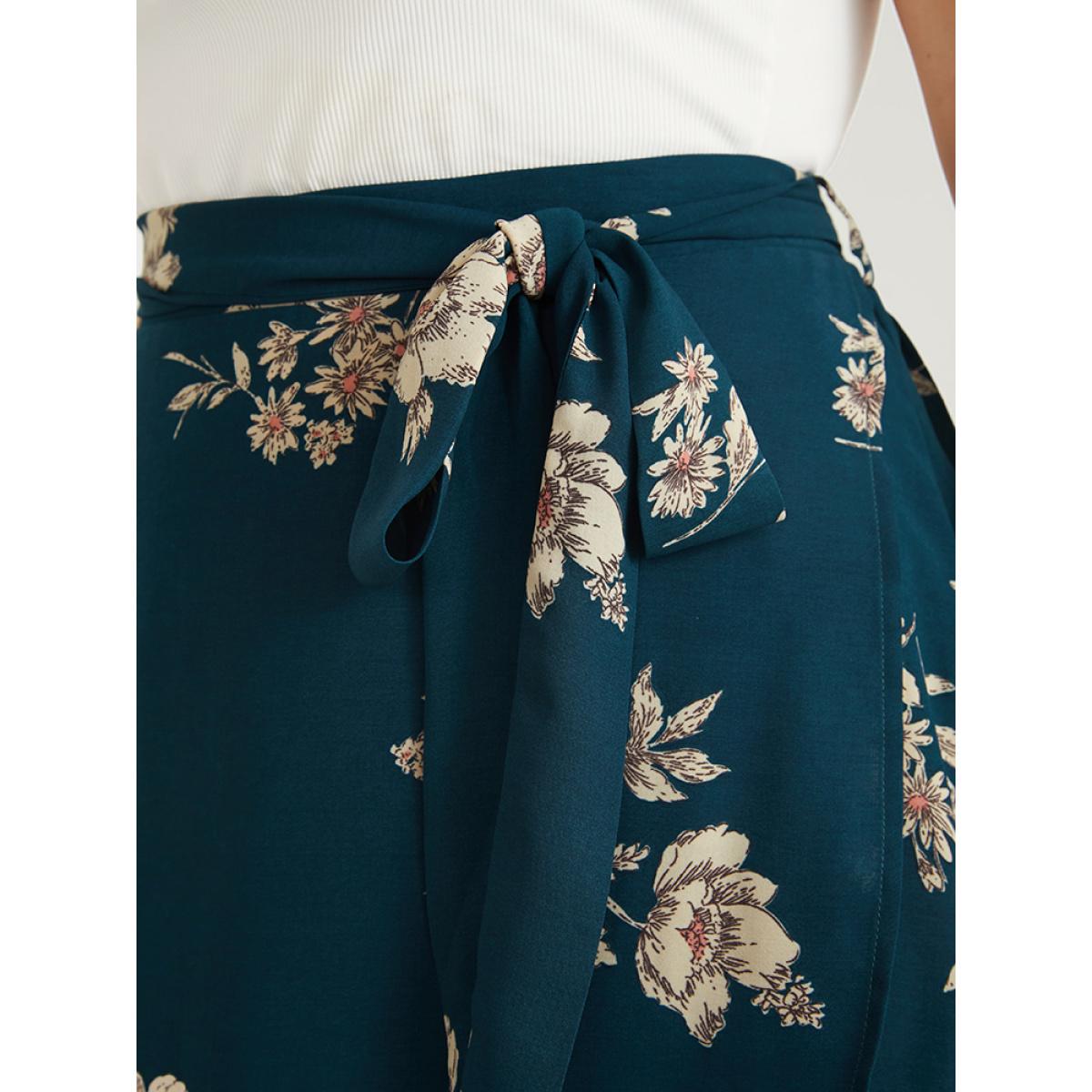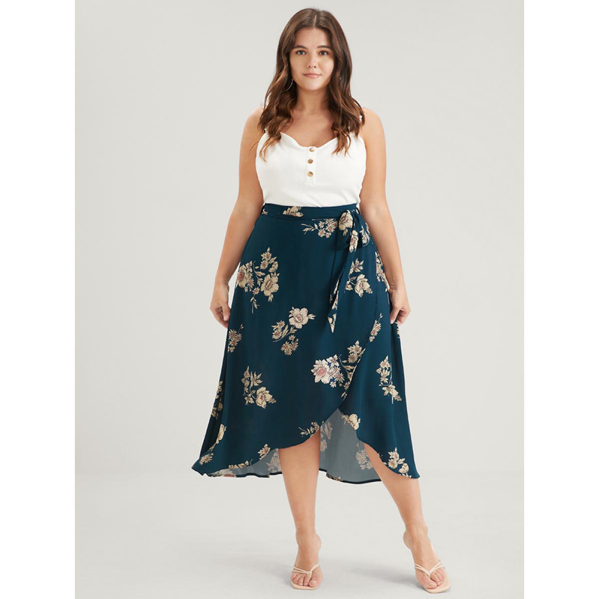 Plus Size Floral Knotted Elastic Waist Wrap Split Skirt Women Aegean Elegant Printed No stretch Belt Dailywear Skirts BloomChic 28/5X