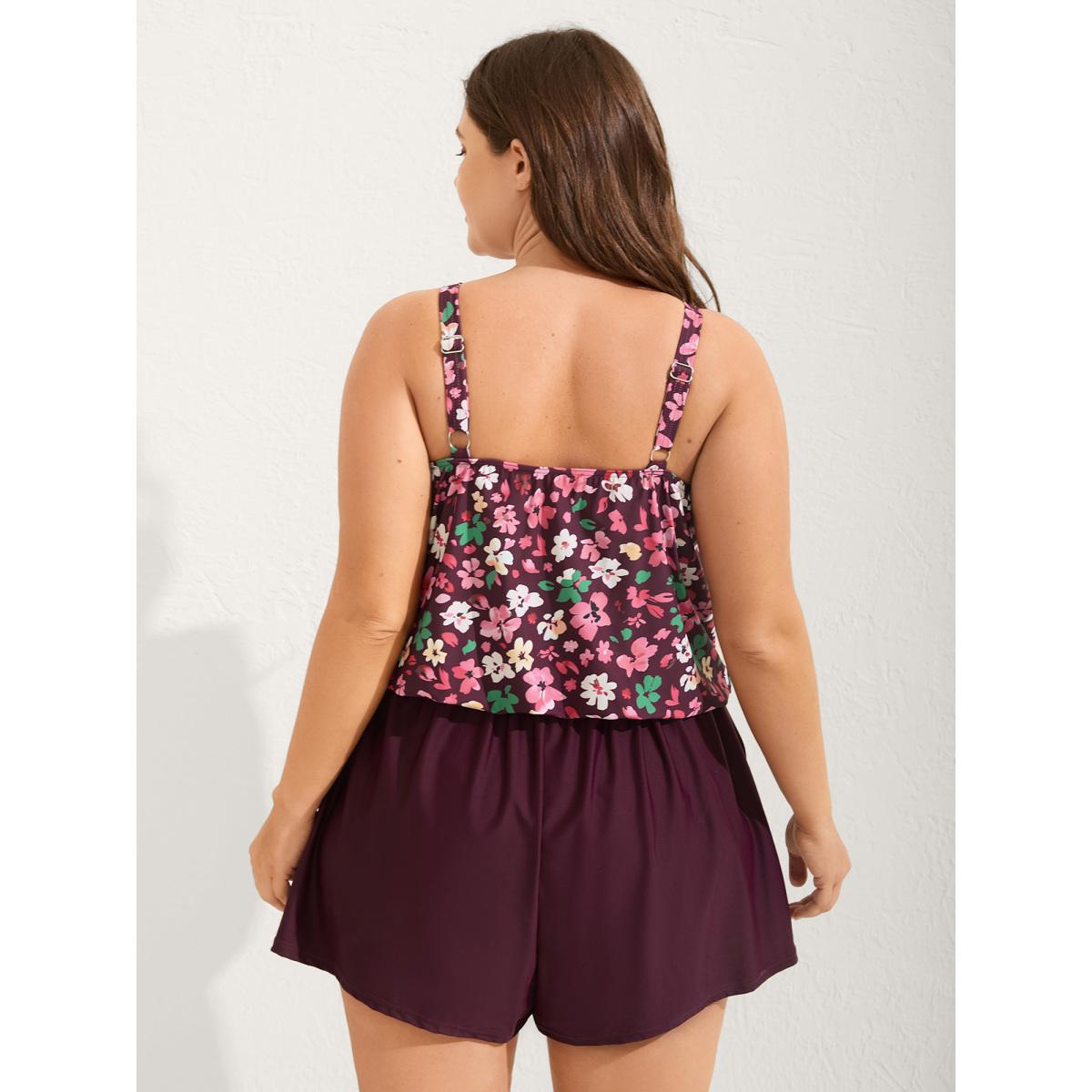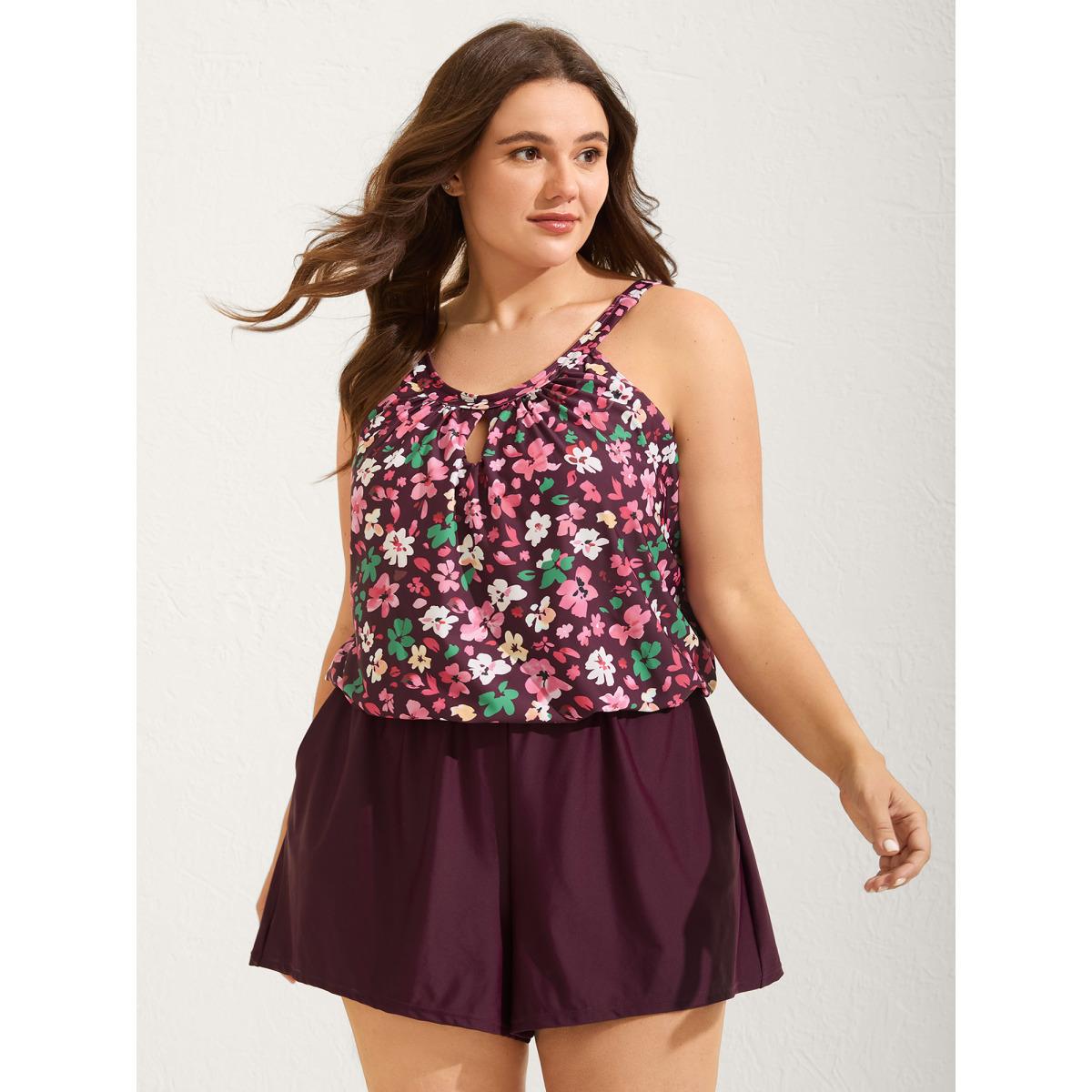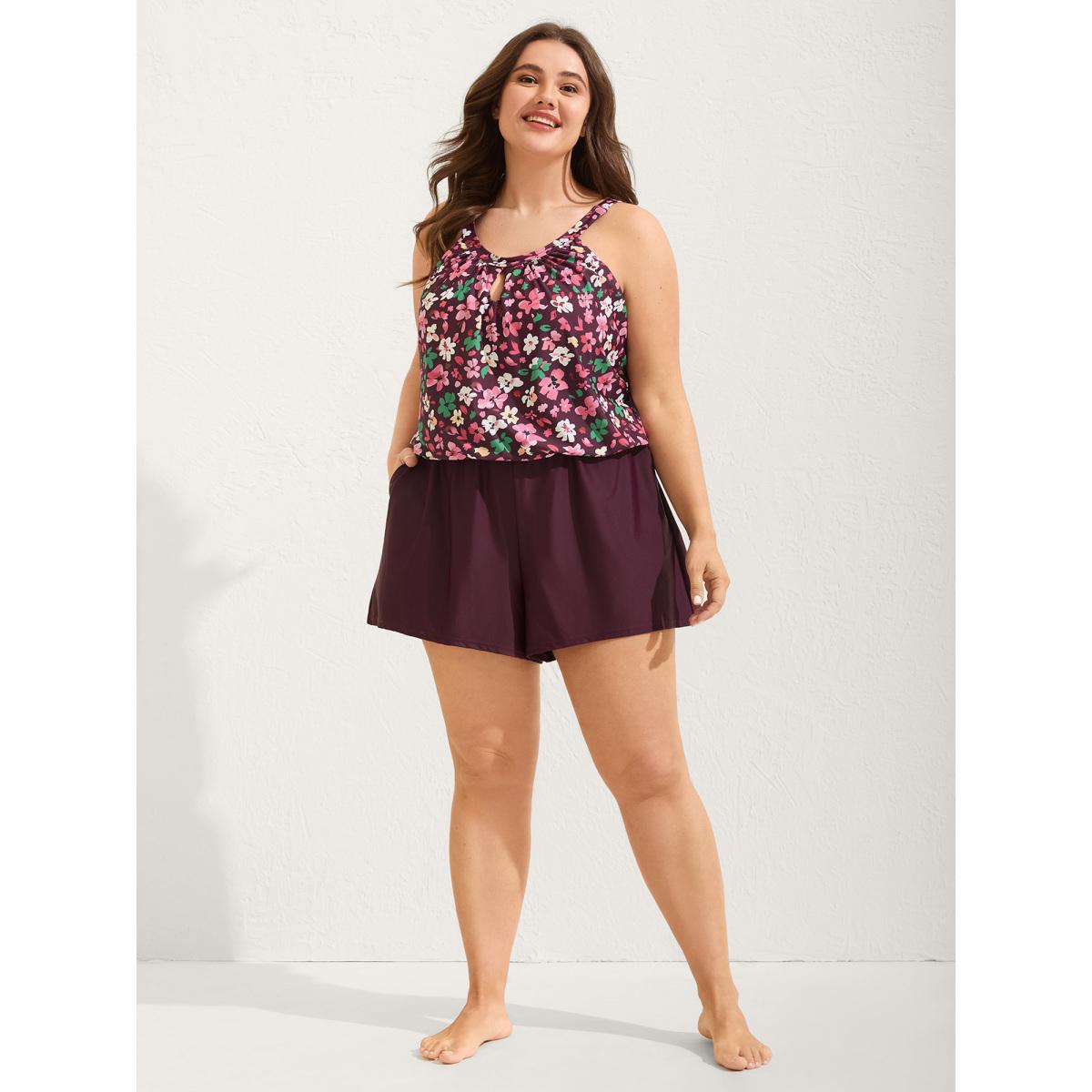 Plus Size Floral Print Keyhole Pockets Swim Romper Women's Swimwear Plum Resort Pocket Curve Bathing Suits High stretch One Pieces BloomChic 12/L