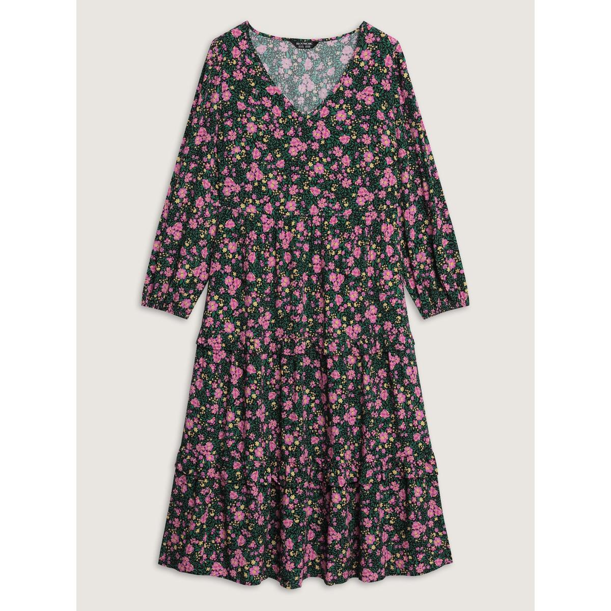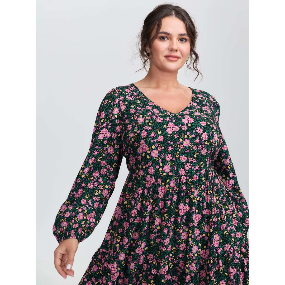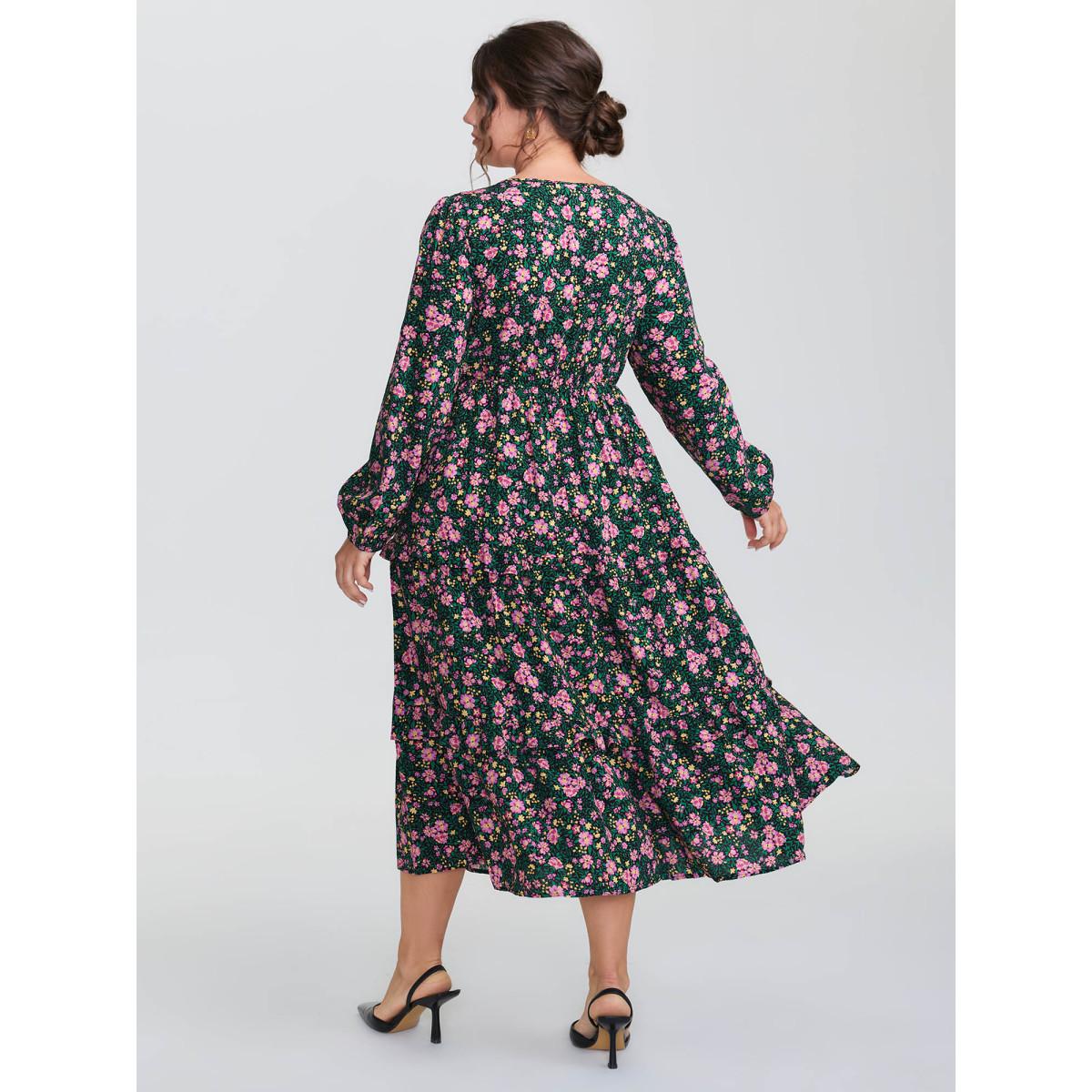 Plus Size Floral Print Ruffled Tiered Maxi Dress Multicolor Women Timeless Ruffles V-neck Extra Long Sleeve Curvy BloomChic 28/5X