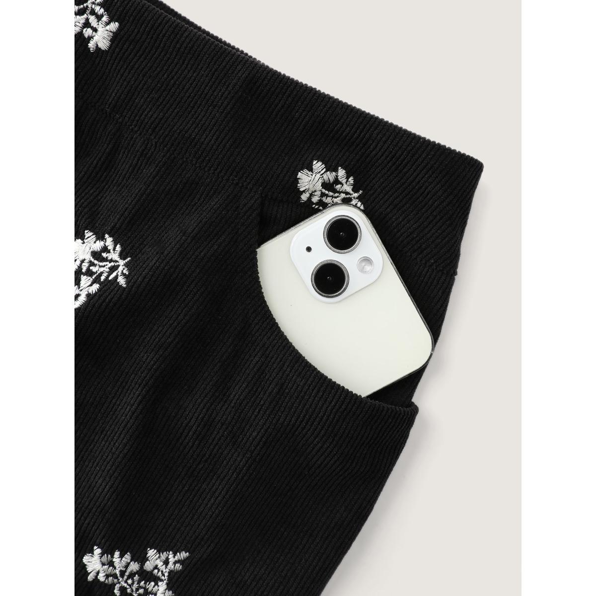 Plus Size Floral Print Pocket Split Straight Pants Women Black Elegant Wide Leg High Rise Dailywear Pants BloomChic 12/L