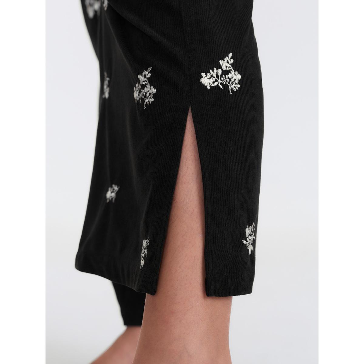 Plus Size Floral Print Slit Hem Flared Pants Women Black Retro Bodycon Mid Rise Elegant Pants BloomChic 12/L