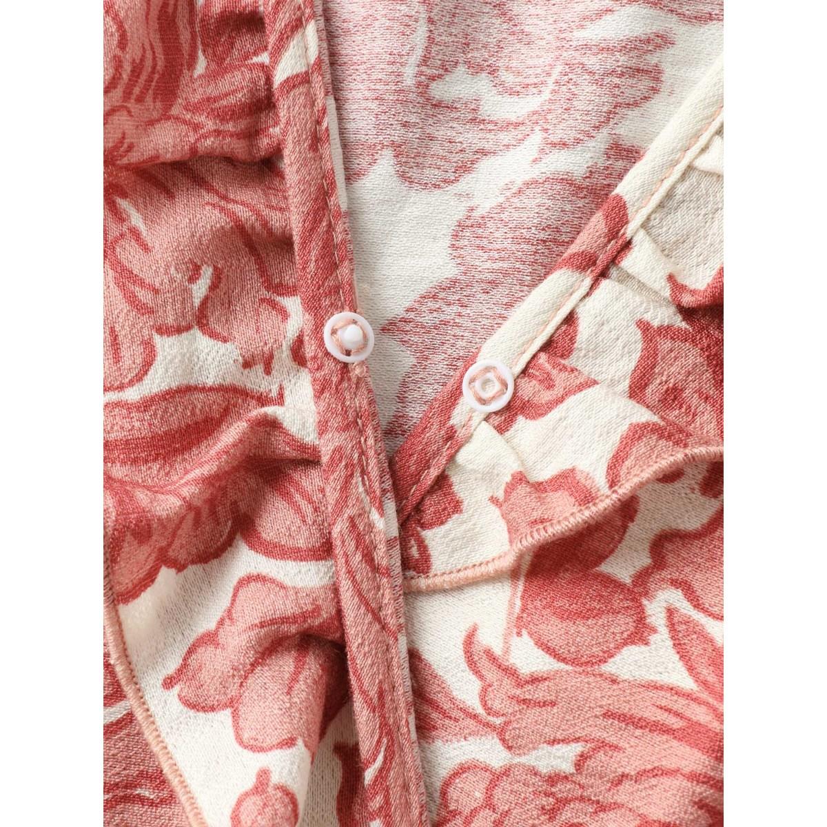 Plus Size Floral Print Wrap Ruffled Midi Dress Crimson Women Romantic Overlap Collar Short sleeve Curvy BloomChic 12/L Product Image