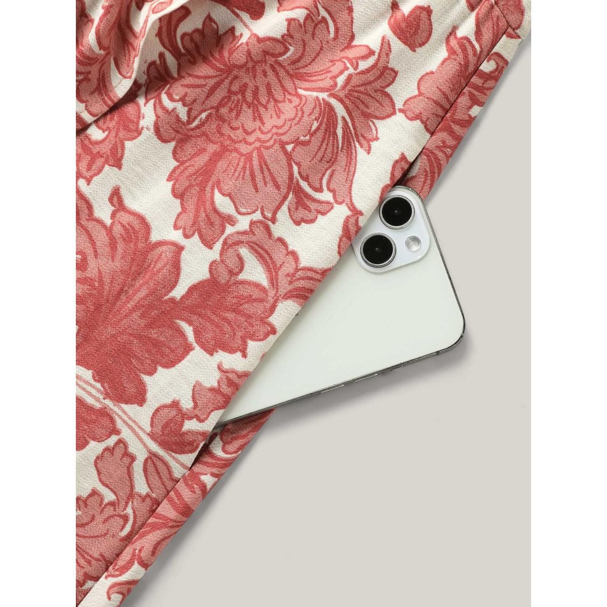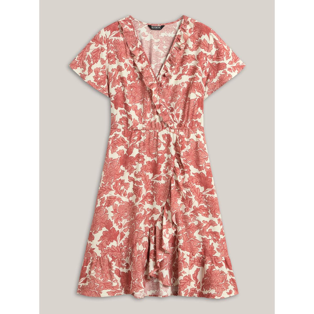 Plus Size Floral Print Wrap Ruffled Midi Dress Crimson Women Romantic Overlap Collar Short sleeve Curvy BloomChic 12/L