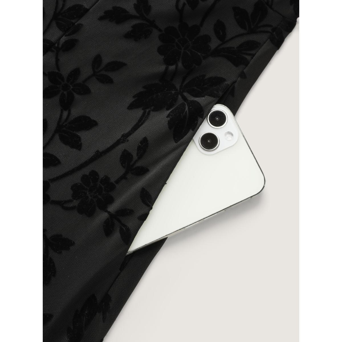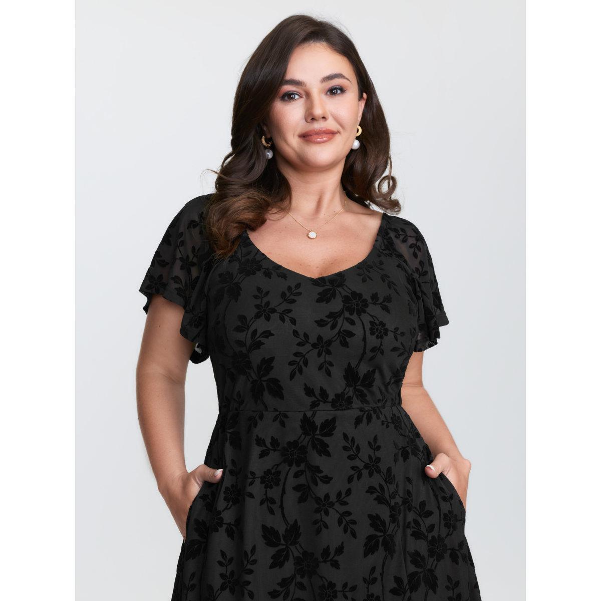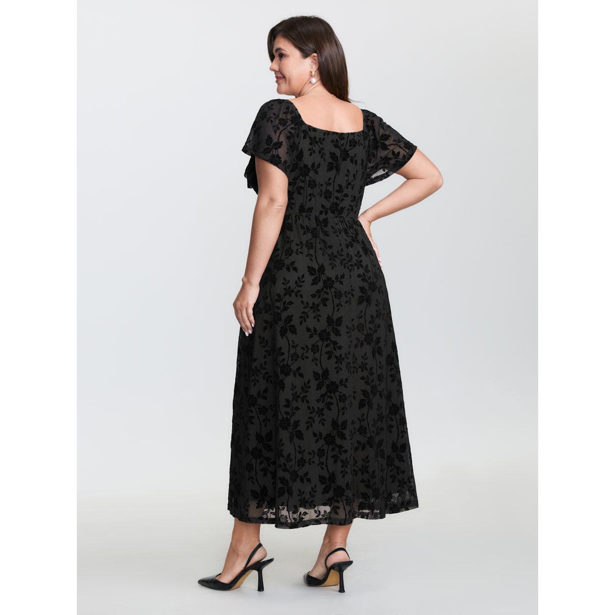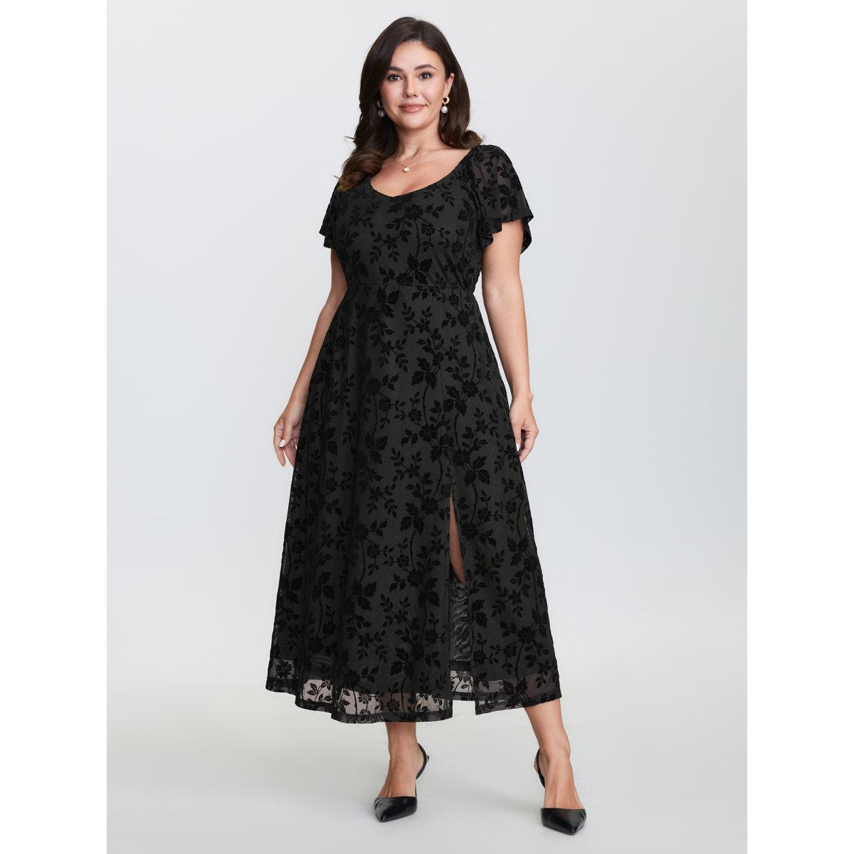 Plus Size Floral Textured Jacquard Slit Hem Maxi Dress Black Women Formal V-neck Cap Sleeve Curvy BloomChic 26/4X