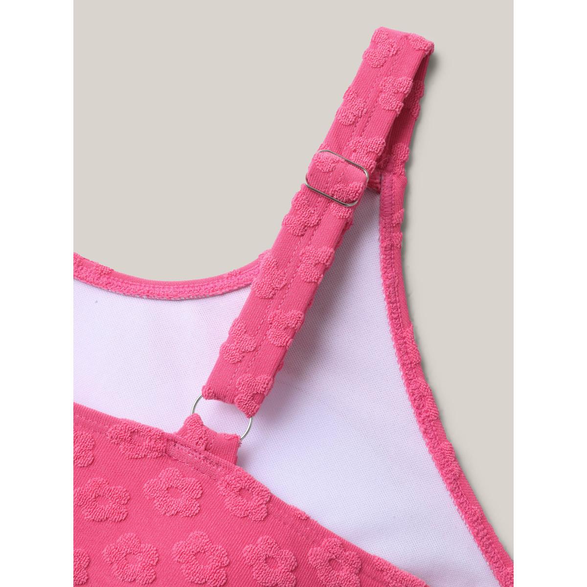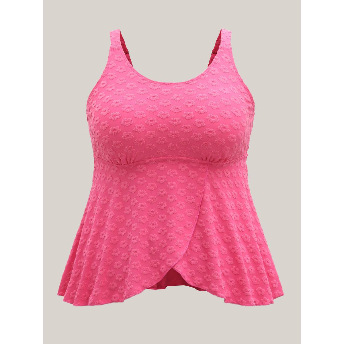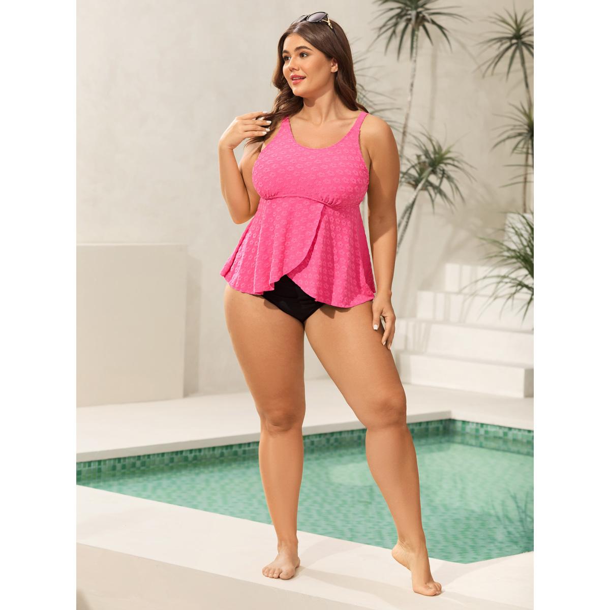 Plus Size Floral Textured Overlap Split Swim Top Women's Swimwear Rosered Resort Texture High stretch Bodycon U-neck Curve Swim Tops BloomChic 26/4X