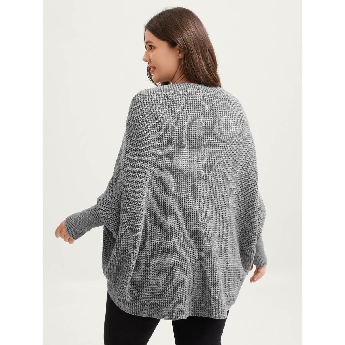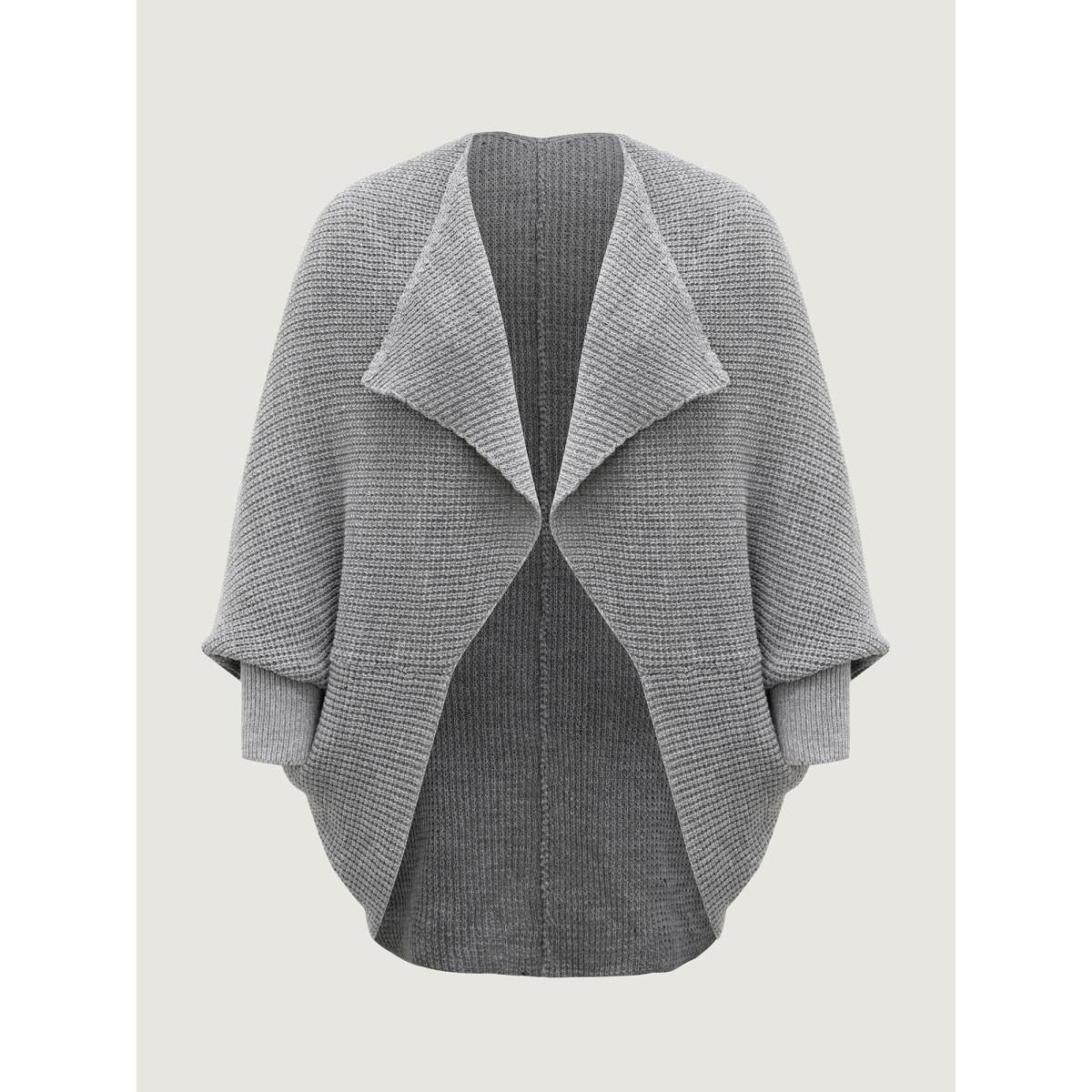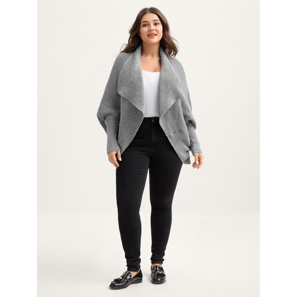 Plus Size Folded Collar Textured Open-Front Knit Cardigan Mediumgray Women Leisure Oversized Long Sleeve Casual Cardigans BloomChic 14-16/1X