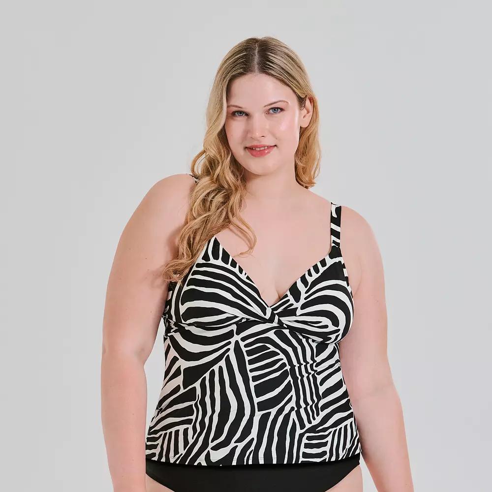 You'll look so stylish in this Women's Freshwater Molded Twist Front Tankini Swim Top.Click on this WOMEN'S GUIDE to find the perfect fit and more!You'll look so stylish in this Women's Freshwater Molded Twist Front Tankini Swim Top. Click on this WOMEN'S GUIDE to find the perfect fit and more!FEATURES Soft bra cups Moderate coverage No closure - pullover styling Sleeveless Partially lined Unlined gusset Wireless Halter neckline Wash before wearingFIT & SIZING Adjustable strapsFABRIC & CARE 85% recycled nylon, 15% spandex 100% recycled polyester lining Hand wash and line dry Imported Size: 2X. Color: Zebra Waves. Gender: female. Age Group: adult.