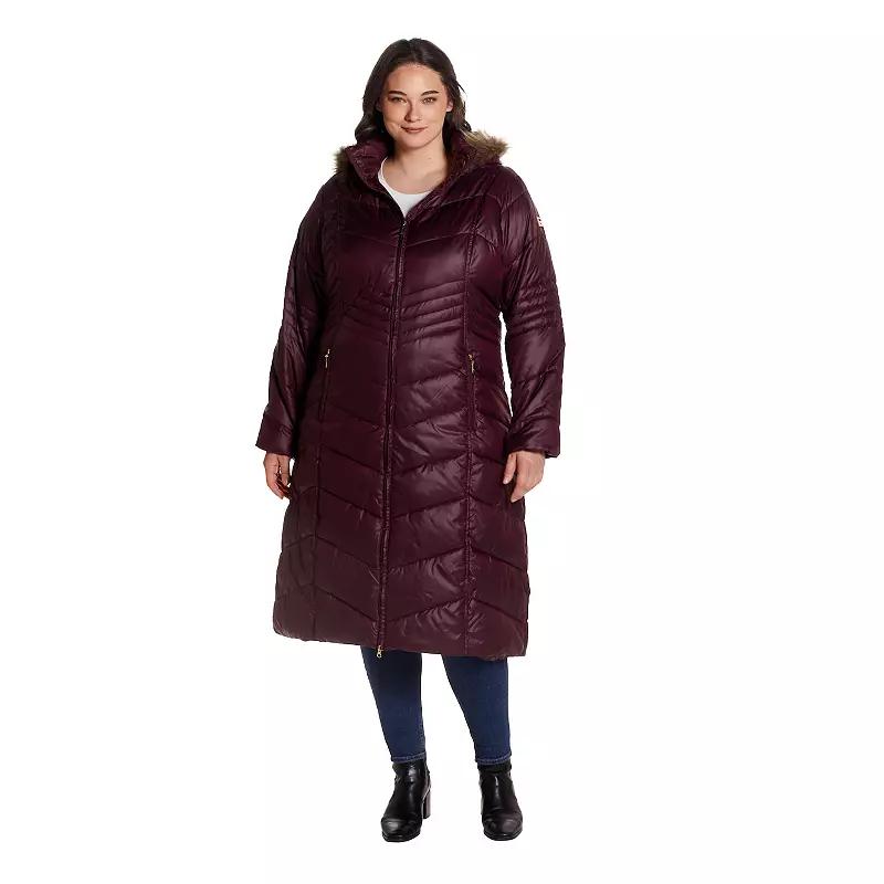 Plus Size Gallery Faux-Fur Hood Chevron Long Puffer Coat, Womens Product Image