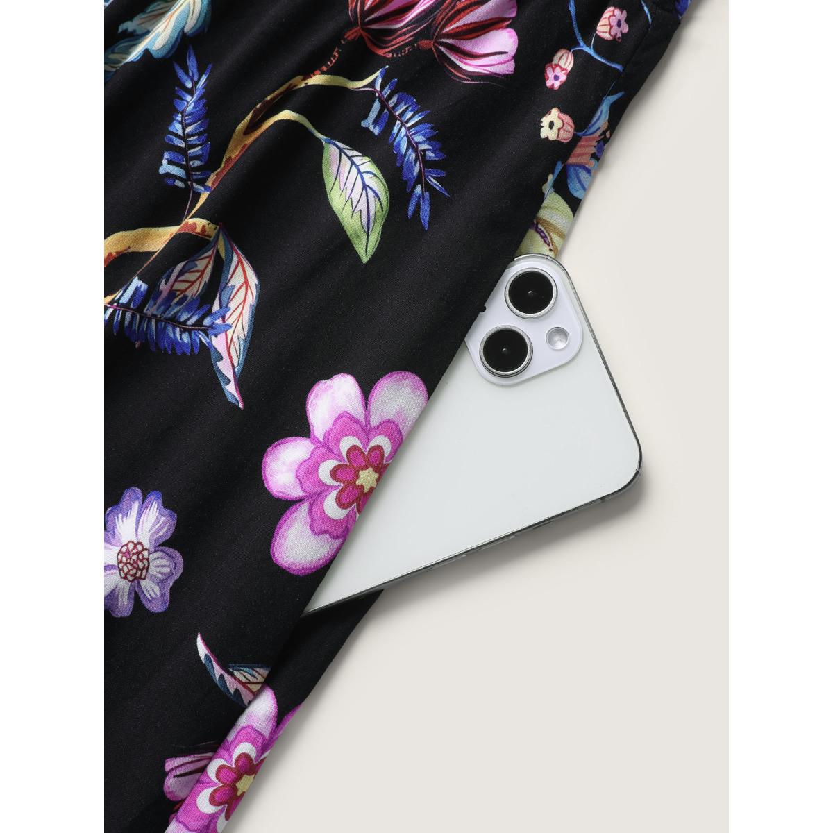 Plus Size Floral Print Pocket V Neck Elastic Waist Sleeveless Dress Black Women Elegant Elastic Waist V-neck Sleeveless Curvy Midi Dress BloomChic 10/M