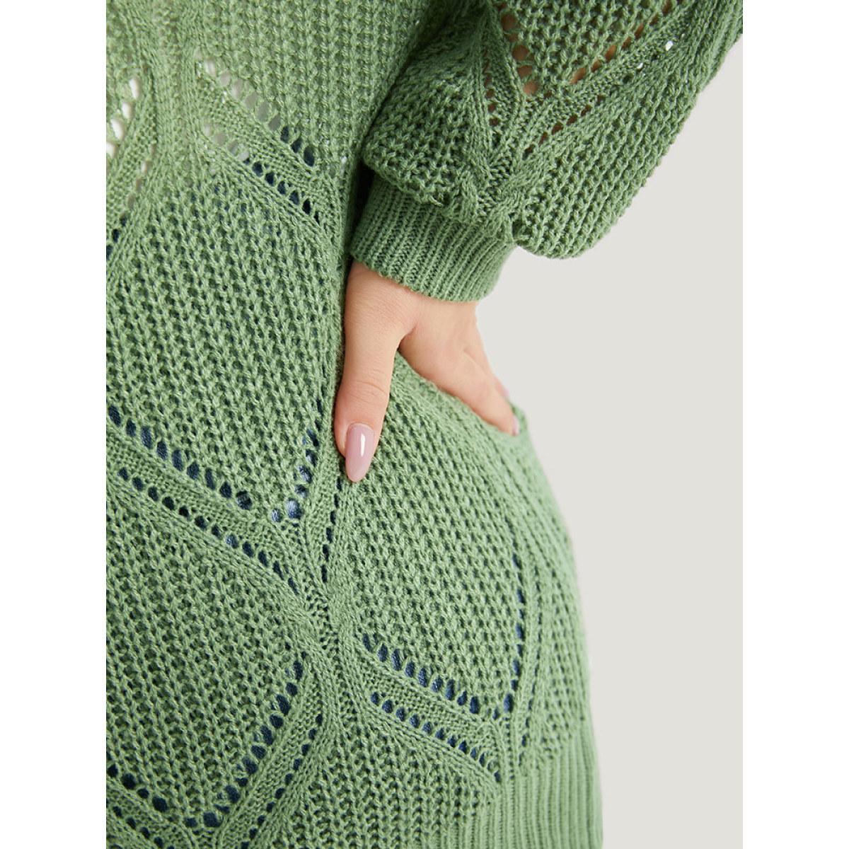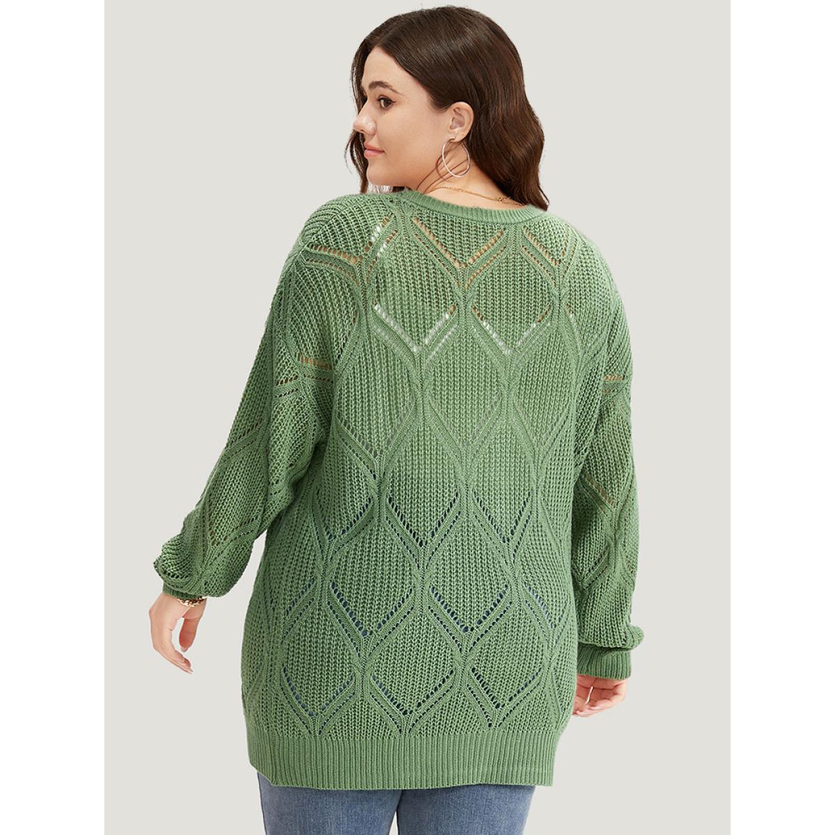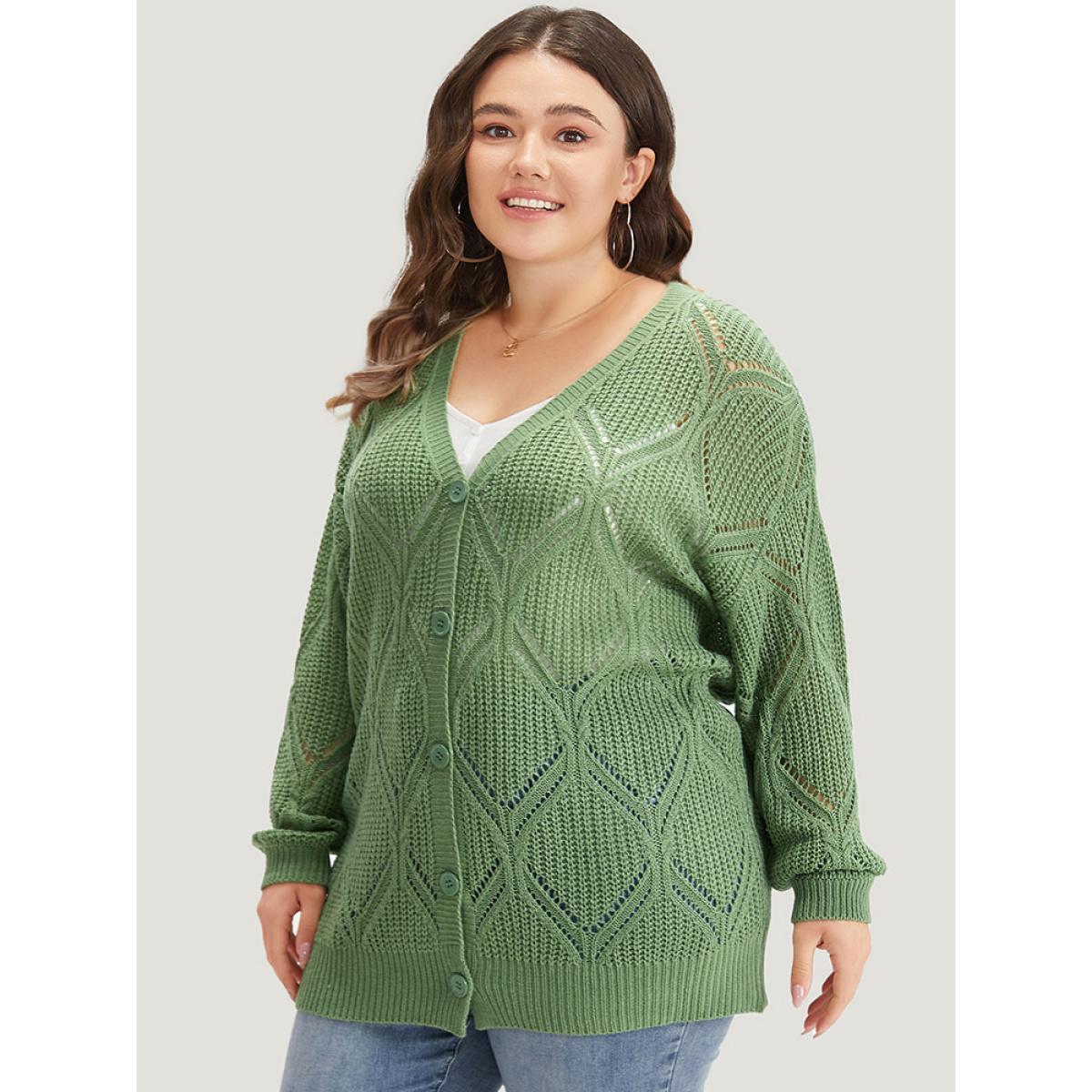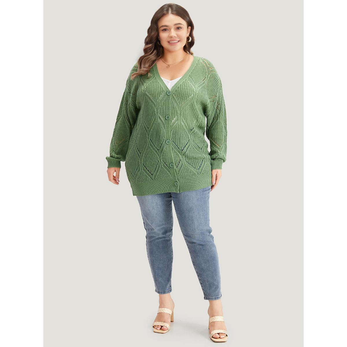 Plus Size Geo Plisse Button Through Elastic Cuffs Cardigan Green Women Casual Loose Long Sleeve Everyday Cardigans BloomChic 18-20/2X