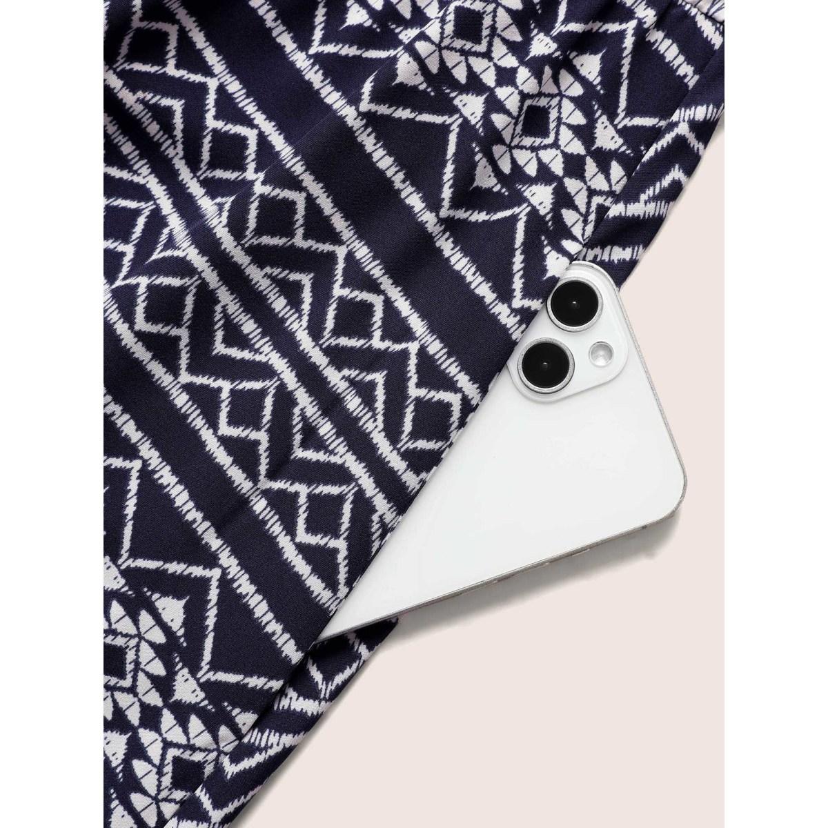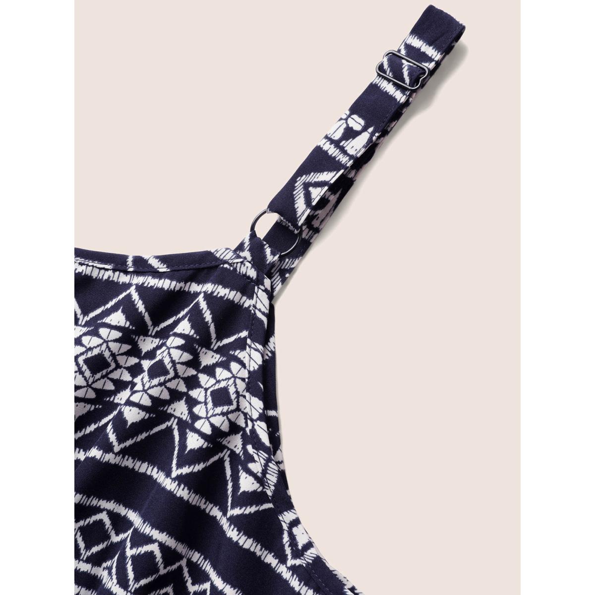 Plus Size Geometric Bandana Print Elastic Waist Midi Dress DarkBlue Women Resort Non Round Neck Sleeveless Curvy BloomChic 22-24/3X Product Image