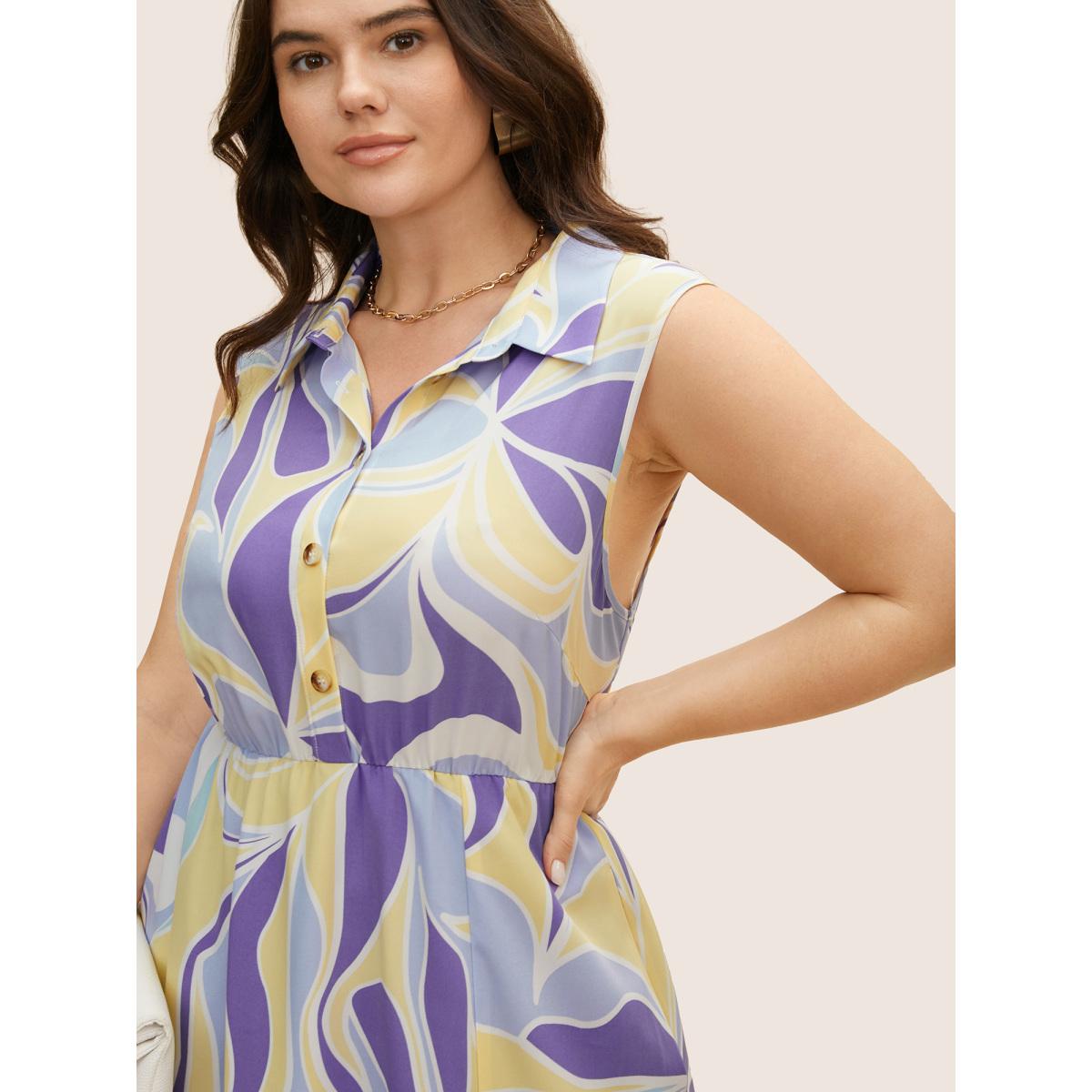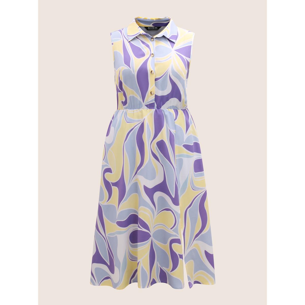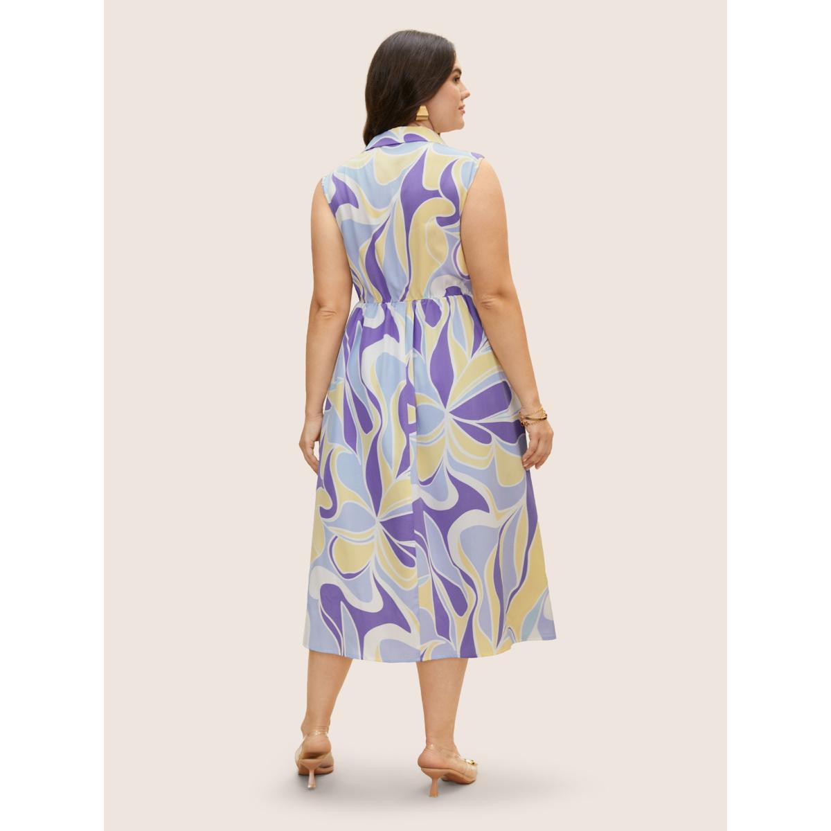 Plus Size Geometric Elastic Waist Button Up Tank Dress Lavender Women At the Office Button Shirt collar Sleeveless Curvy BloomChic 26/4X
