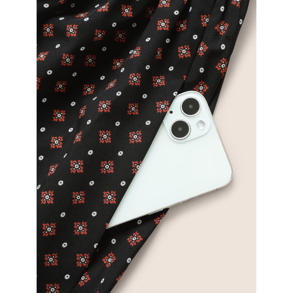Plus Size Geometric Print Pocket Notched Belted Dress Black Women Elegant Elastic cuffs Notched collar Long Sleeve Curvy Midi Dress BloomChic 14-16/1X