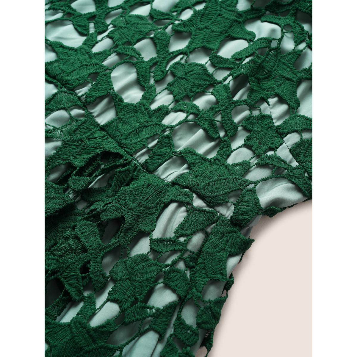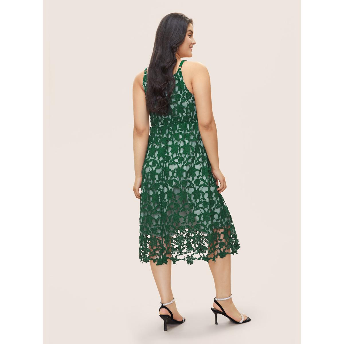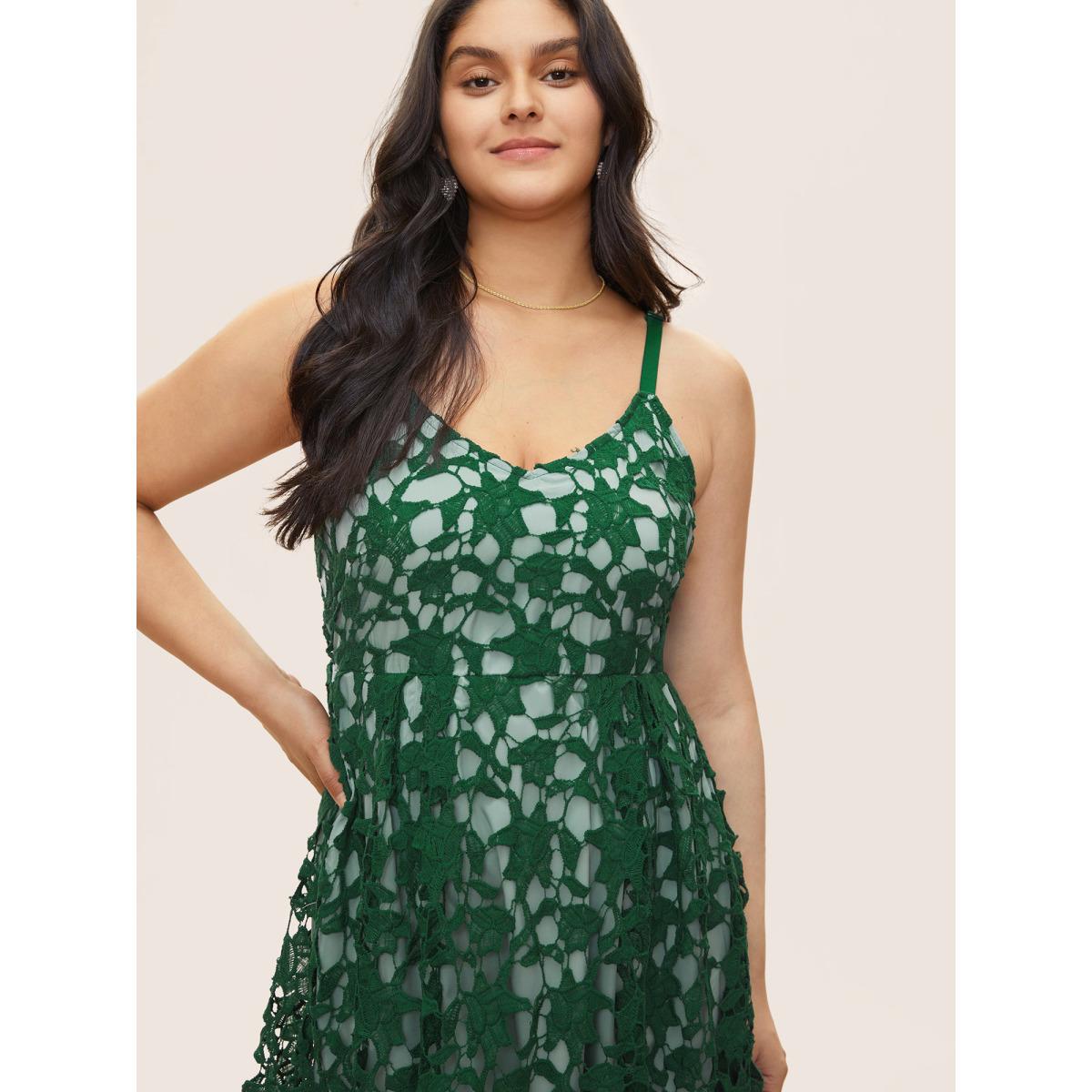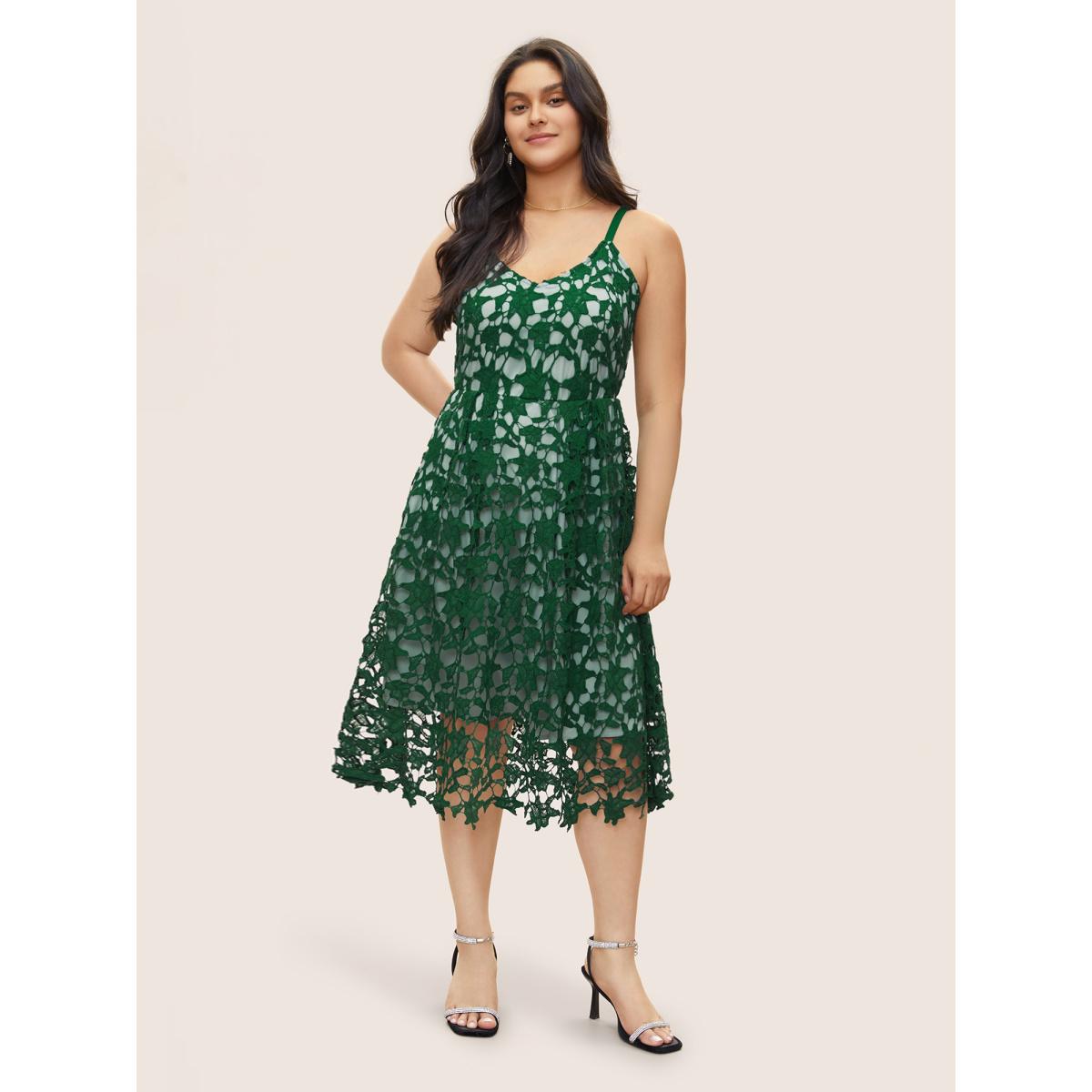 Plus Size Geometric Patchwork Cut Out Adjustable Straps Dress DarkGreen Women Cocktail Non V-neck Sleeveless Curvy Midi Dress BloomChic 26/4X