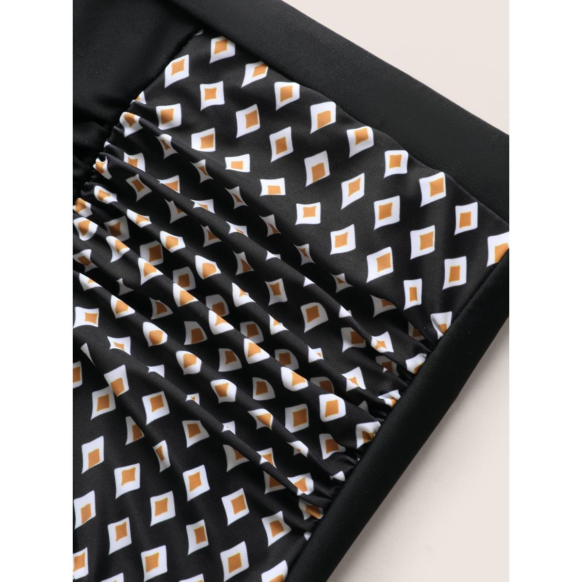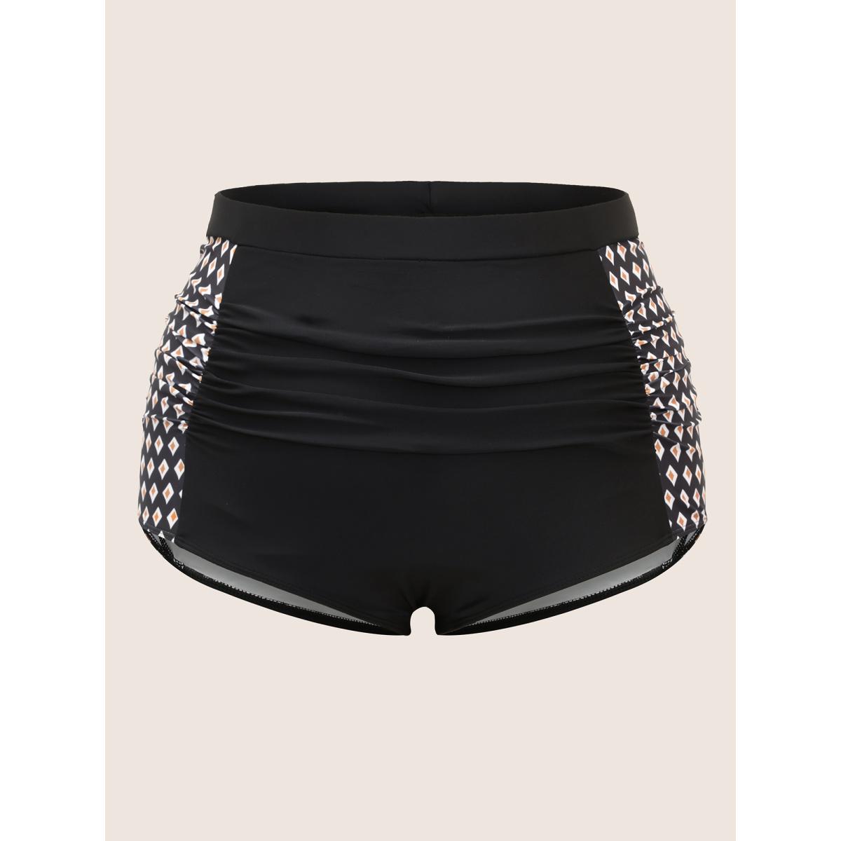 Plus Size Geometric Patchwork Ruched High Rise Swim Bottom Women's Swimwear Black Beach Gathered High stretch Skinny High Rise Curve Swim Bottoms BloomChic 28/5X