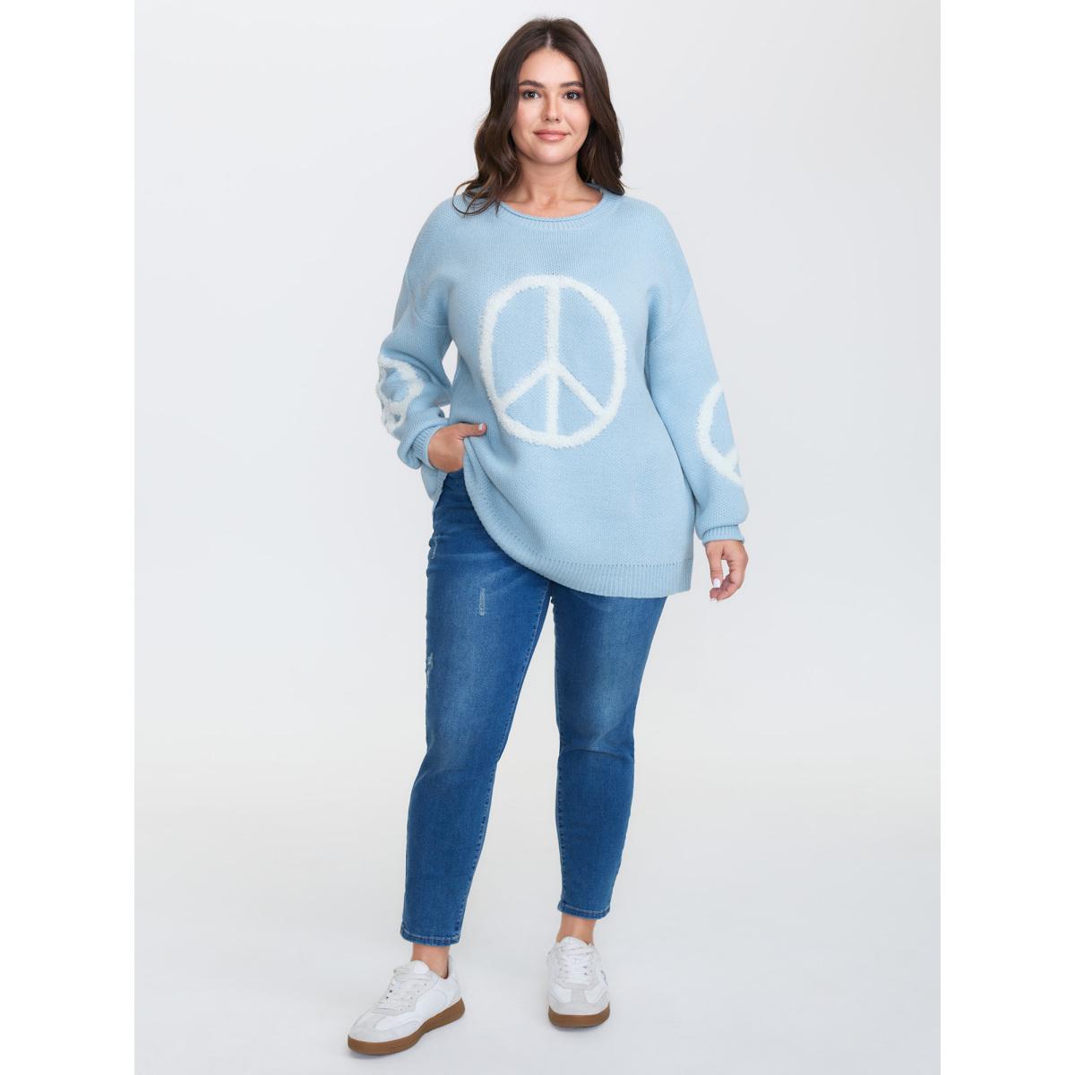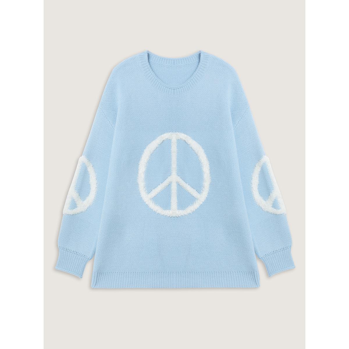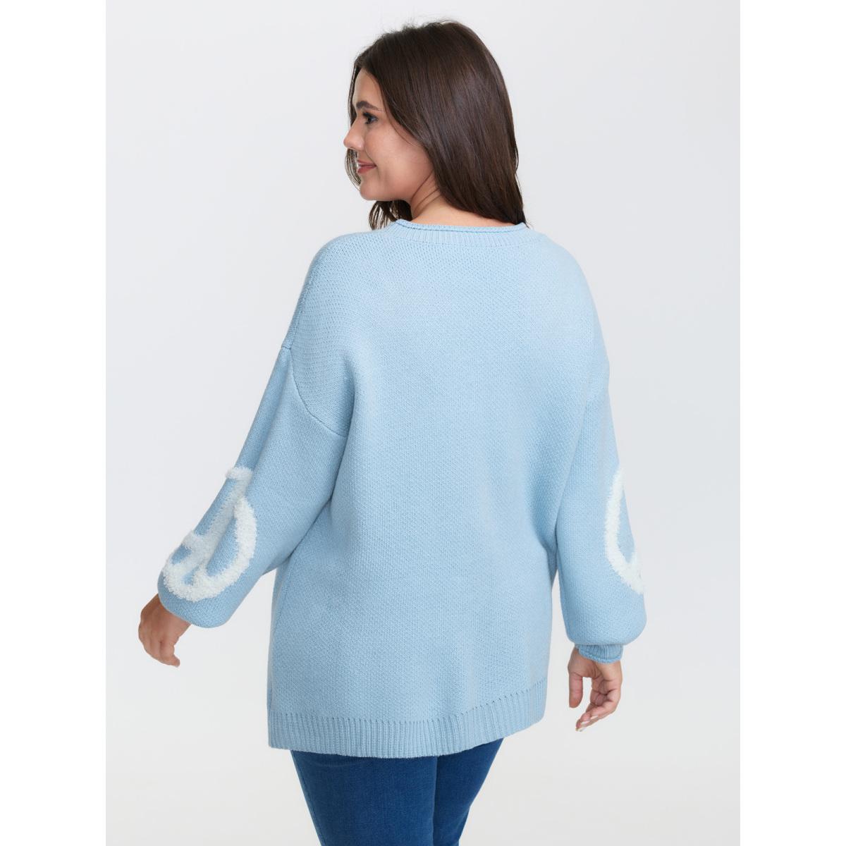 Plus Size Geometric Pattern Textured Ribbed Hem Pullover LightBlue Women Leisure Loose Long Sleeve Round Neck Casual Pullovers BloomChic 22-24/3X