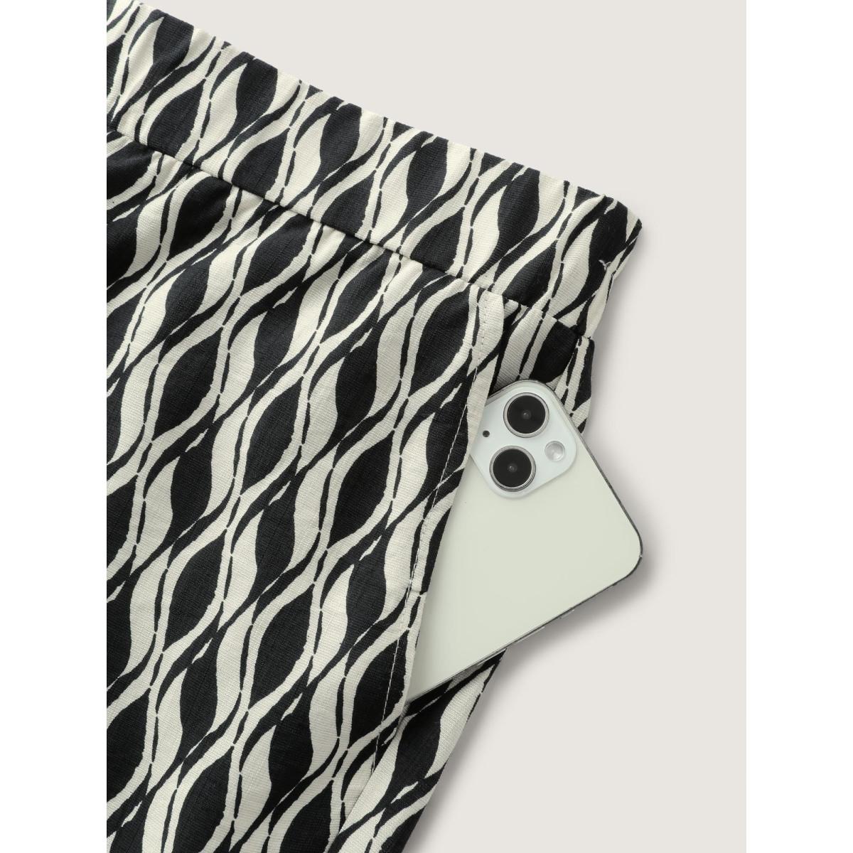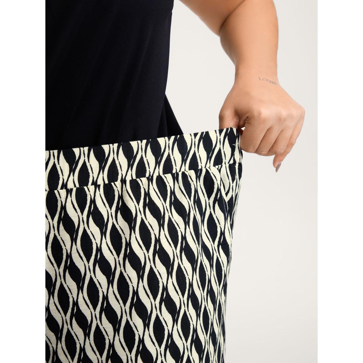 Plus Size Geometric Print Stretchy Waist Wide-Leg Pants Women Black Office Loose Mid Rise Office Pants BloomChic 26/4X Product Image