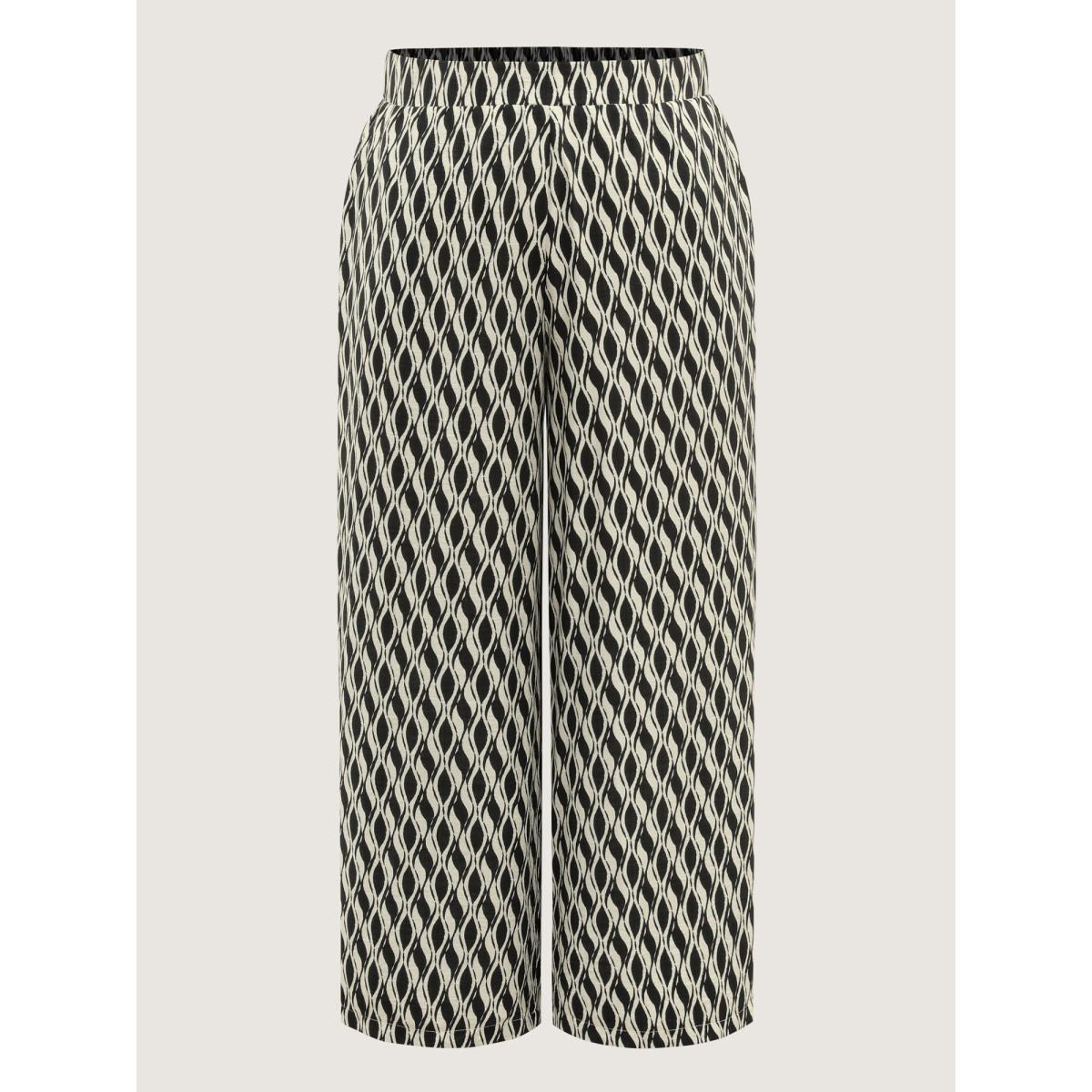 Plus Size Geometric Print Stretchy Waist Wide-Leg Pants Women Black Office Loose Mid Rise Office Pants BloomChic 26/4X