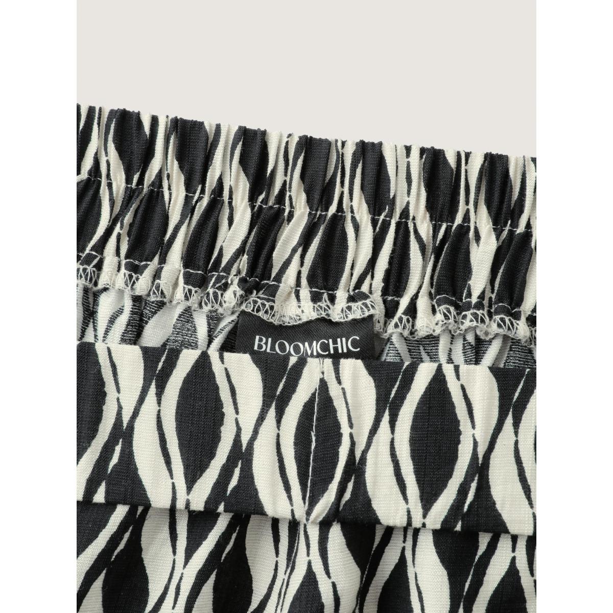 Plus Size Geometric Print Drawstring Wide-Leg Pants Women BlackFlower Loose Mid Rise Office Pants BloomChic 10/M
