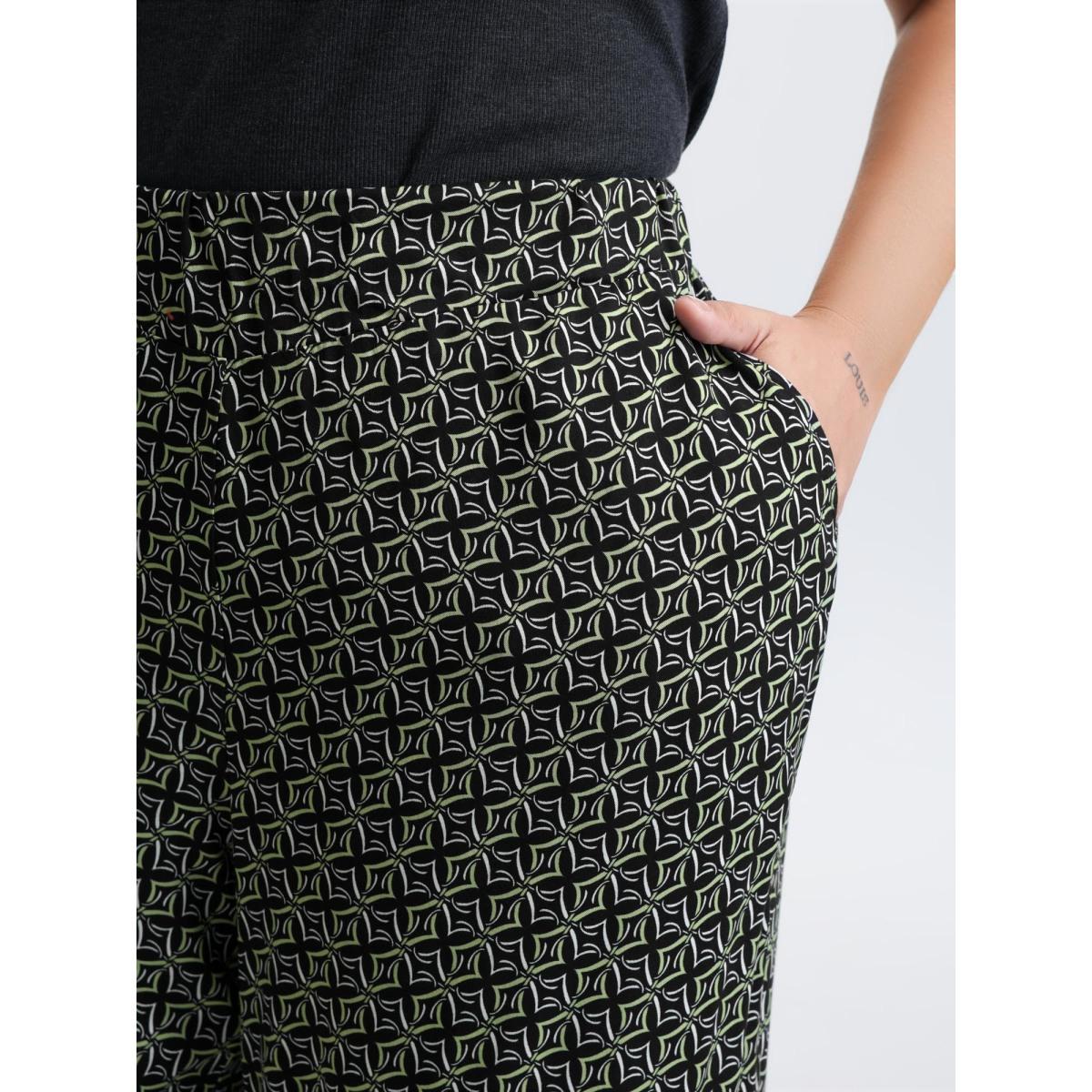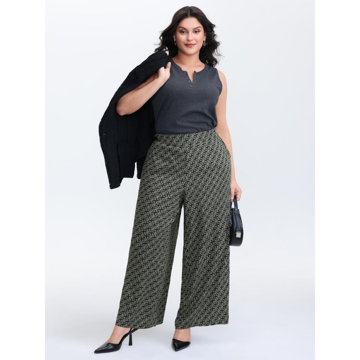 Plus Size Geometric Print Stretchy Waist Wide-Leg Pants Women Multicolor Office Loose Mid Rise Office Pants BloomChic 14-16/1X