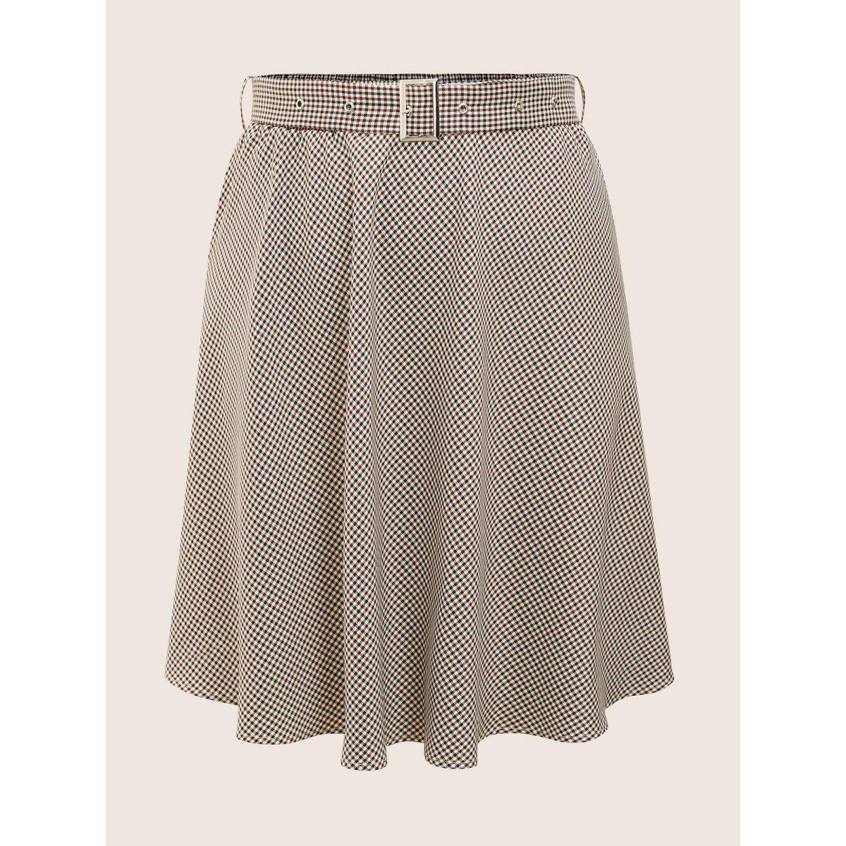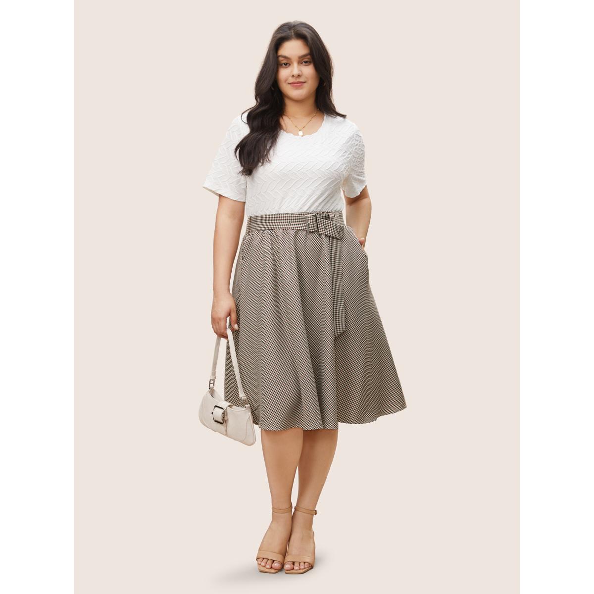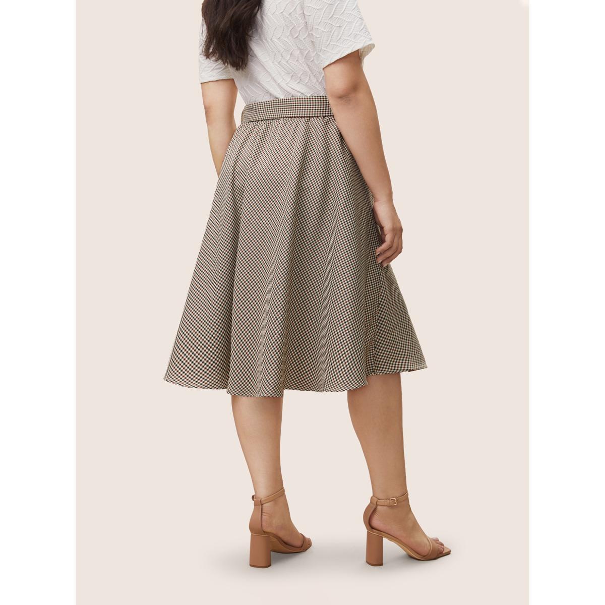 Plus Size Gingham Buckle Detail Pocket Belted Skirt Women LightBrown At the Office Non No stretch Slanted pocket Belt Work Skirts BloomChic 10/M