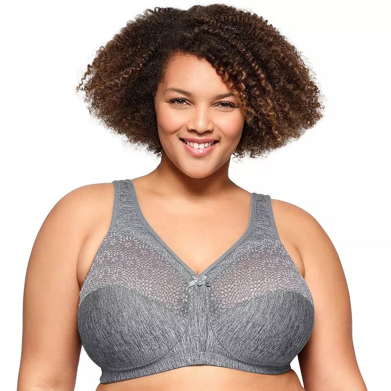 Featuring moisture-wicking materials that guarantee all day comfort and a MagicLift design that supports and shapes your bust without a wire, this womens Glamorise bra is a foundation must-have. Unlined cups Full-coverage Our foam-cushioned band crosses over and under to lift and define the bust Wireless Support level: high Breathable, moisture wicking fabrics to keep you coolWide padded and adjustable shoulder straps for a custom feeling fit Style no. 1064 FIT AND SIZE Hook-and-eye closure CONSTRUCTION AND CARE Polyamide, polyester, elastic Machine wash Imported Size: 38 B. Color: Dark Grey. Gender: female. Age Group: adult.