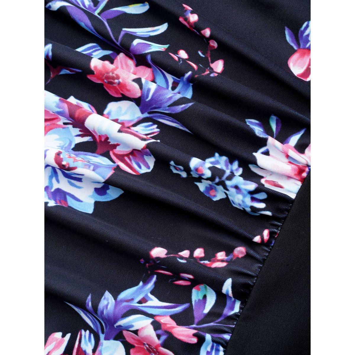Plus Size Glide-Lock Zipper Floral Ruched One-Piece Swimsuit Women's Swimwear Black Beach Gathered Curve Bathing Suits High stretch One Pieces BloomChic 14-16/1X