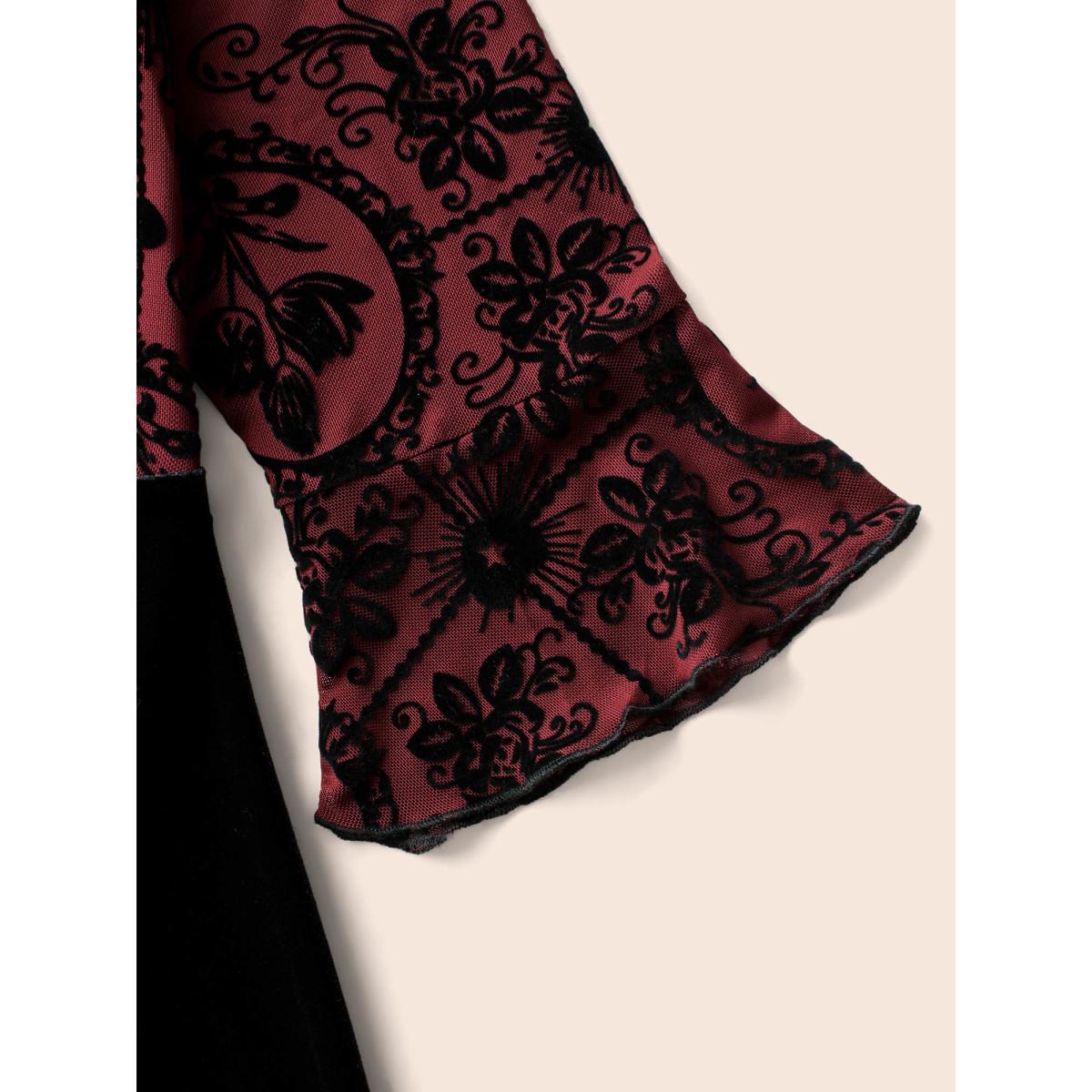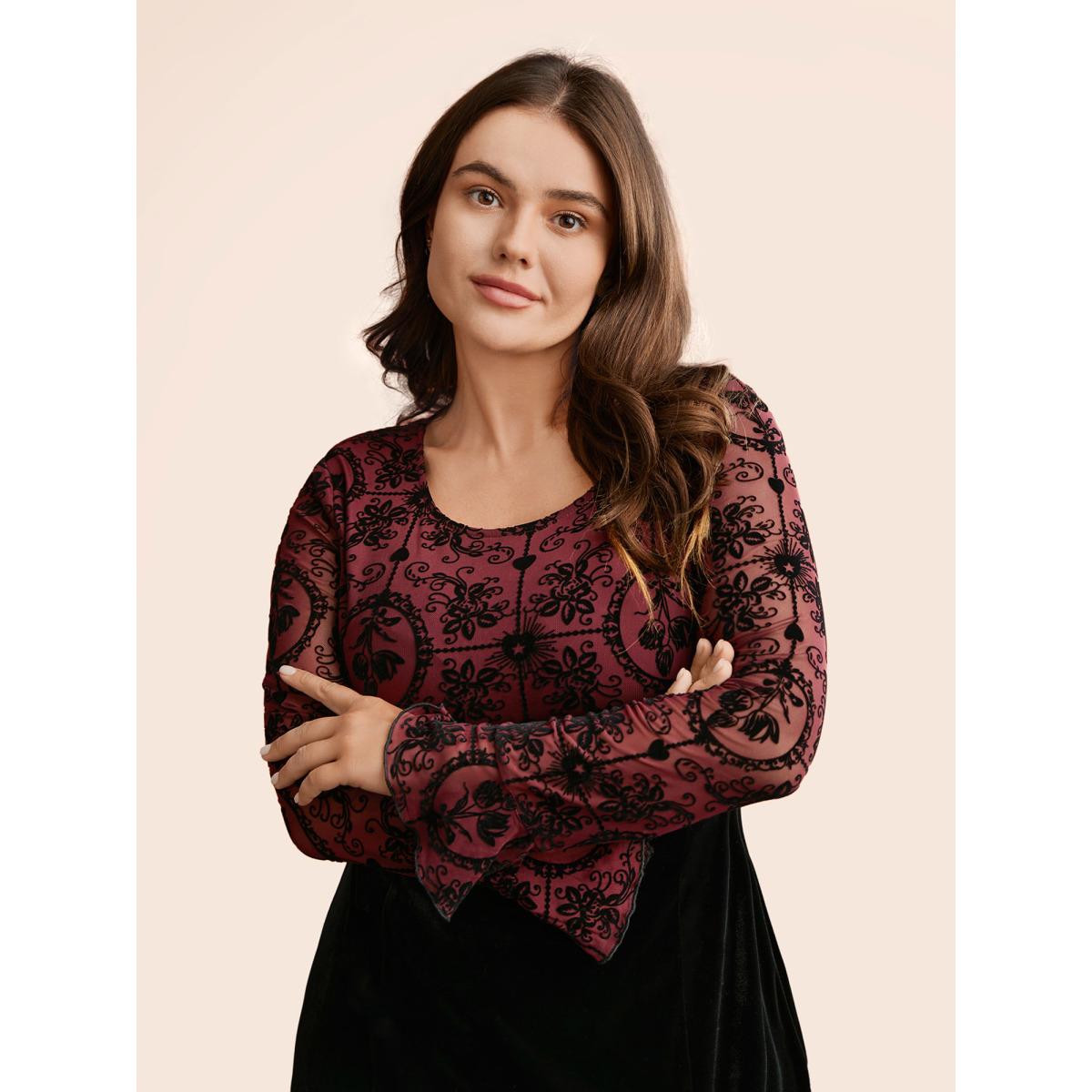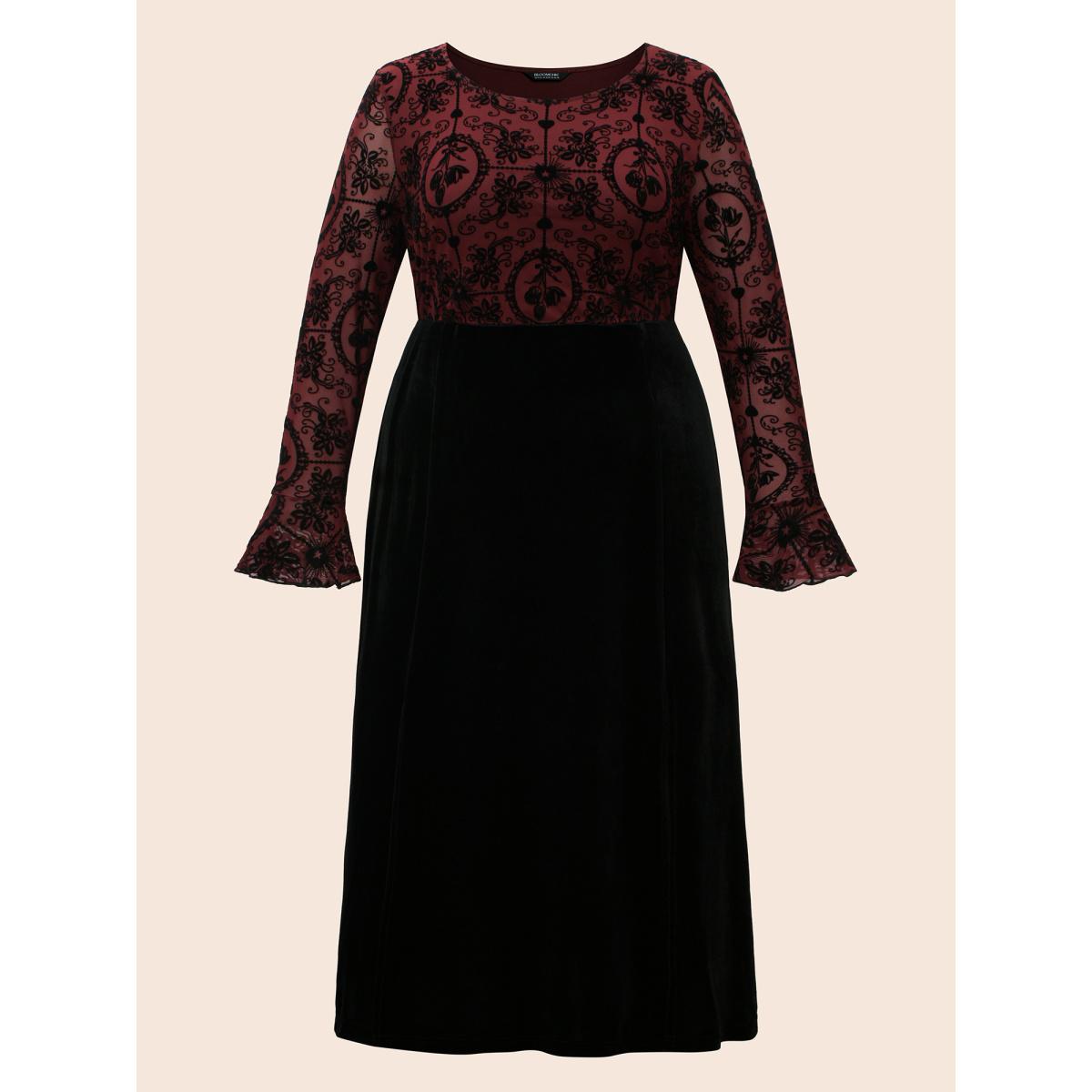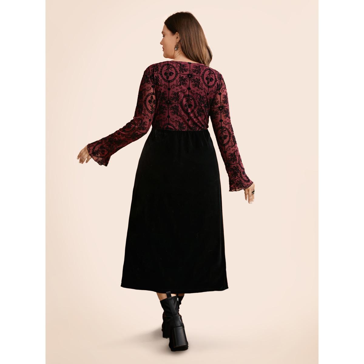 Plus Size Gothic Flocked Mesh Midi Dress Burgundy Women Cocktail Texture Party Curvy Bloomchic 18-20/2X
