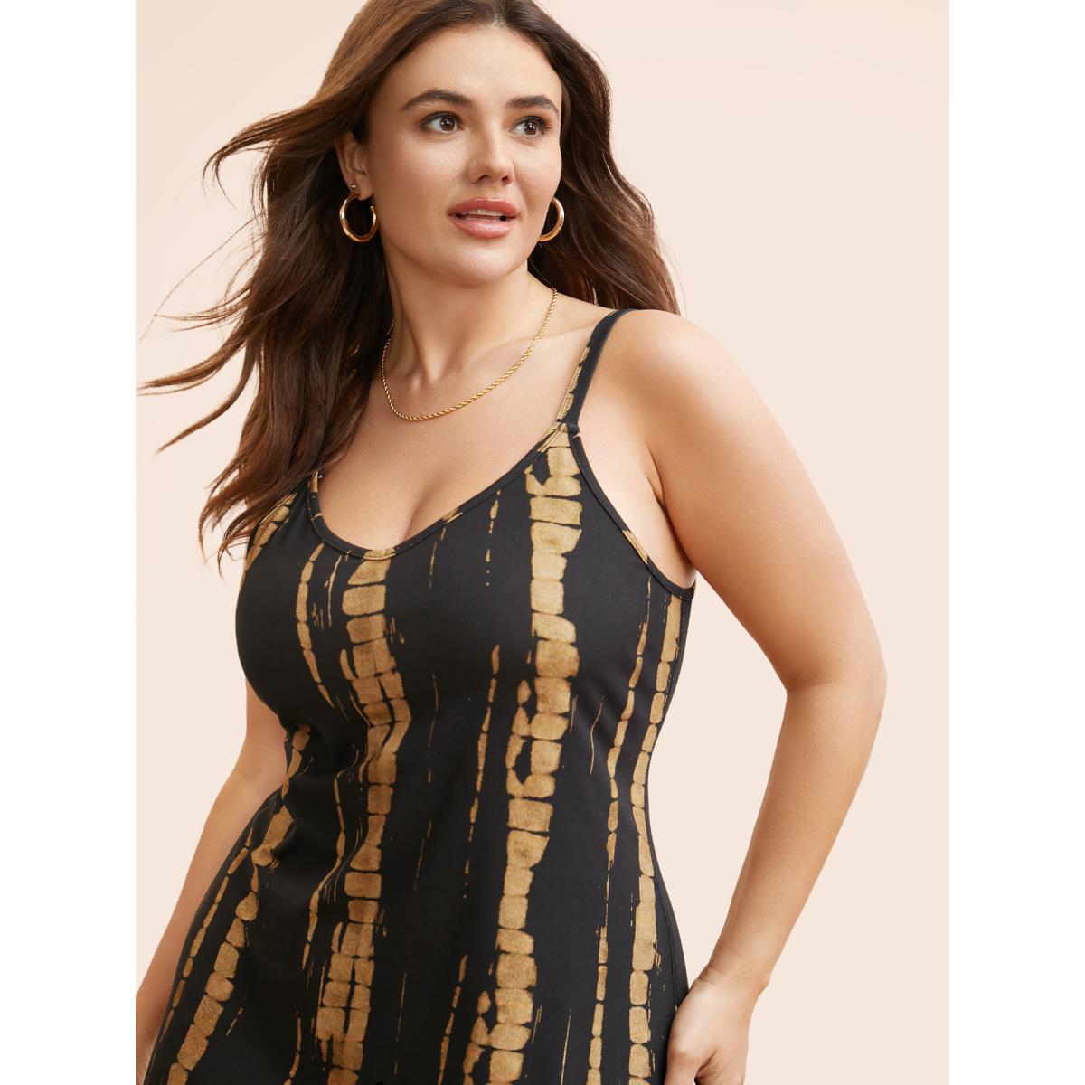 Plus Size Gradient Dyeing Slim Fit Cami Dress Black Women Casual Contrast V-neck Sleeveless Curvy BloomChic 18-20/2X