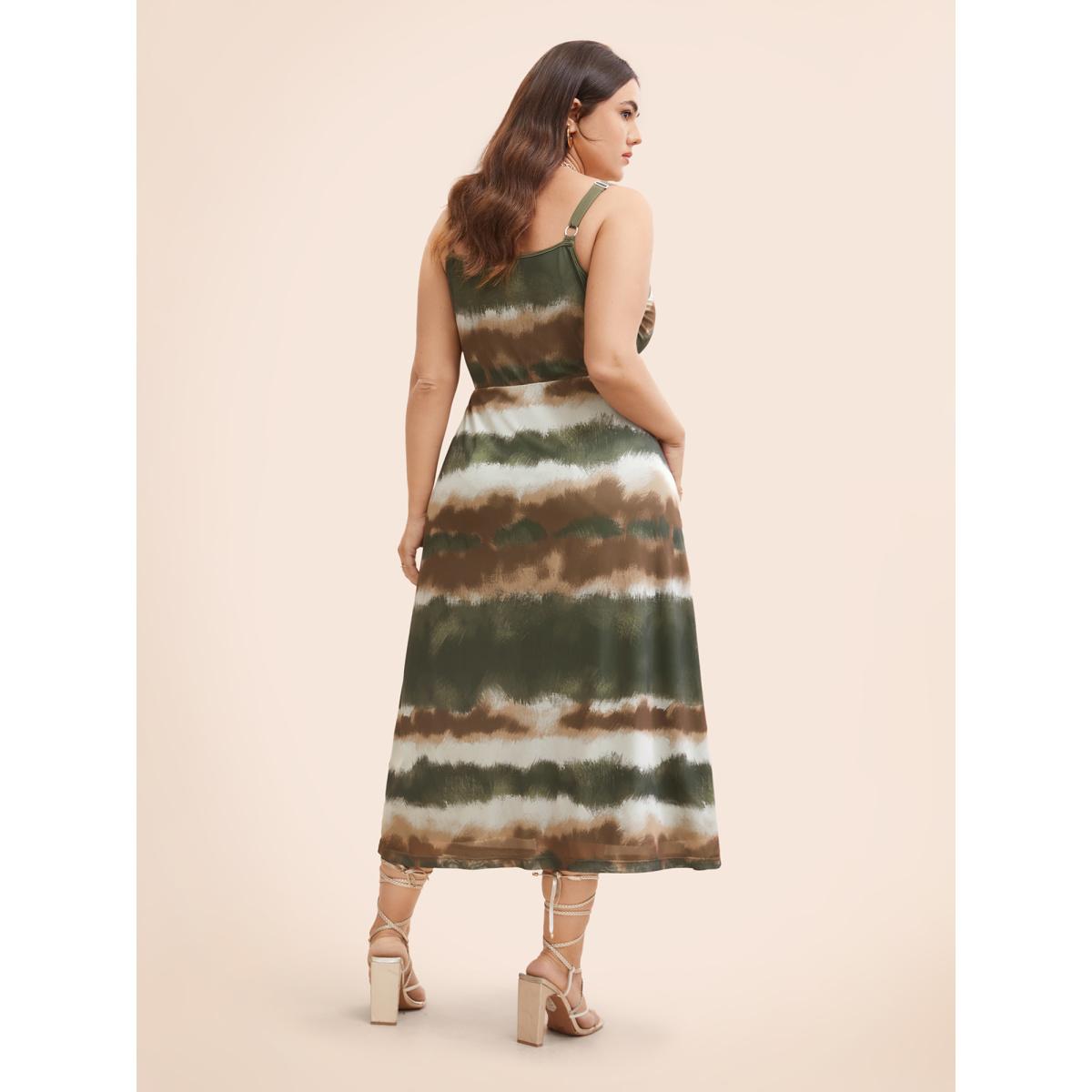 Plus Size Gradient Print Adjustable Straps Cami Dress Bronze Women Elegant Texture V-neck Sleeveless Curvy BloomChic 18-20/2X Product Image