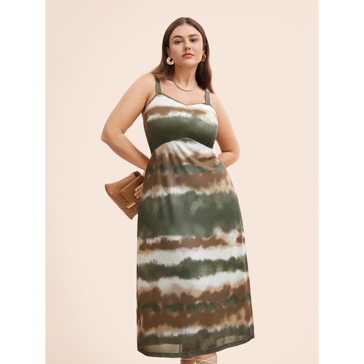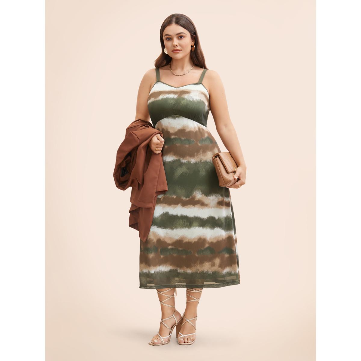 Plus Size Gradient Print Adjustable Straps Cami Dress Bronze Women Elegant Texture V-neck Sleeveless Curvy BloomChic 18-20/2X