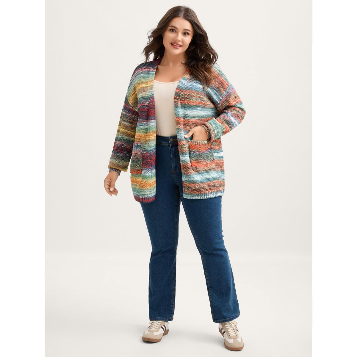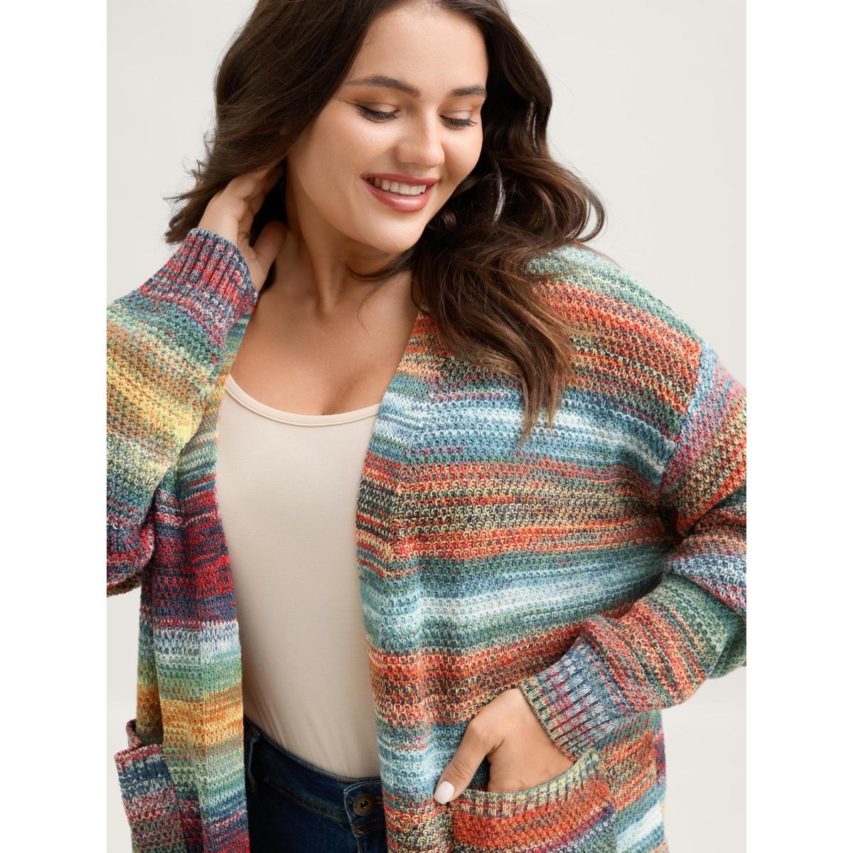 Plus Size Gradual Color Change Textured Knit Cardigan Multicolor Women Playful Loose Long Sleeve Casual Cardigans BloomChic 18-20/2X