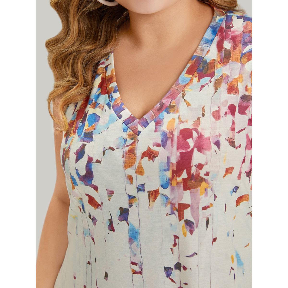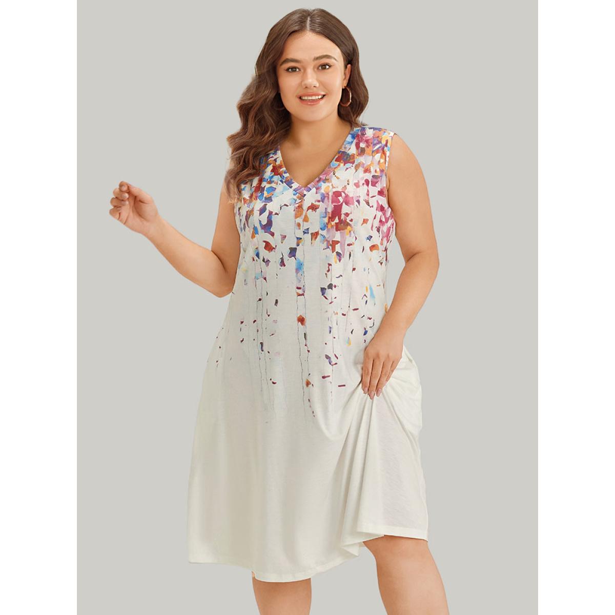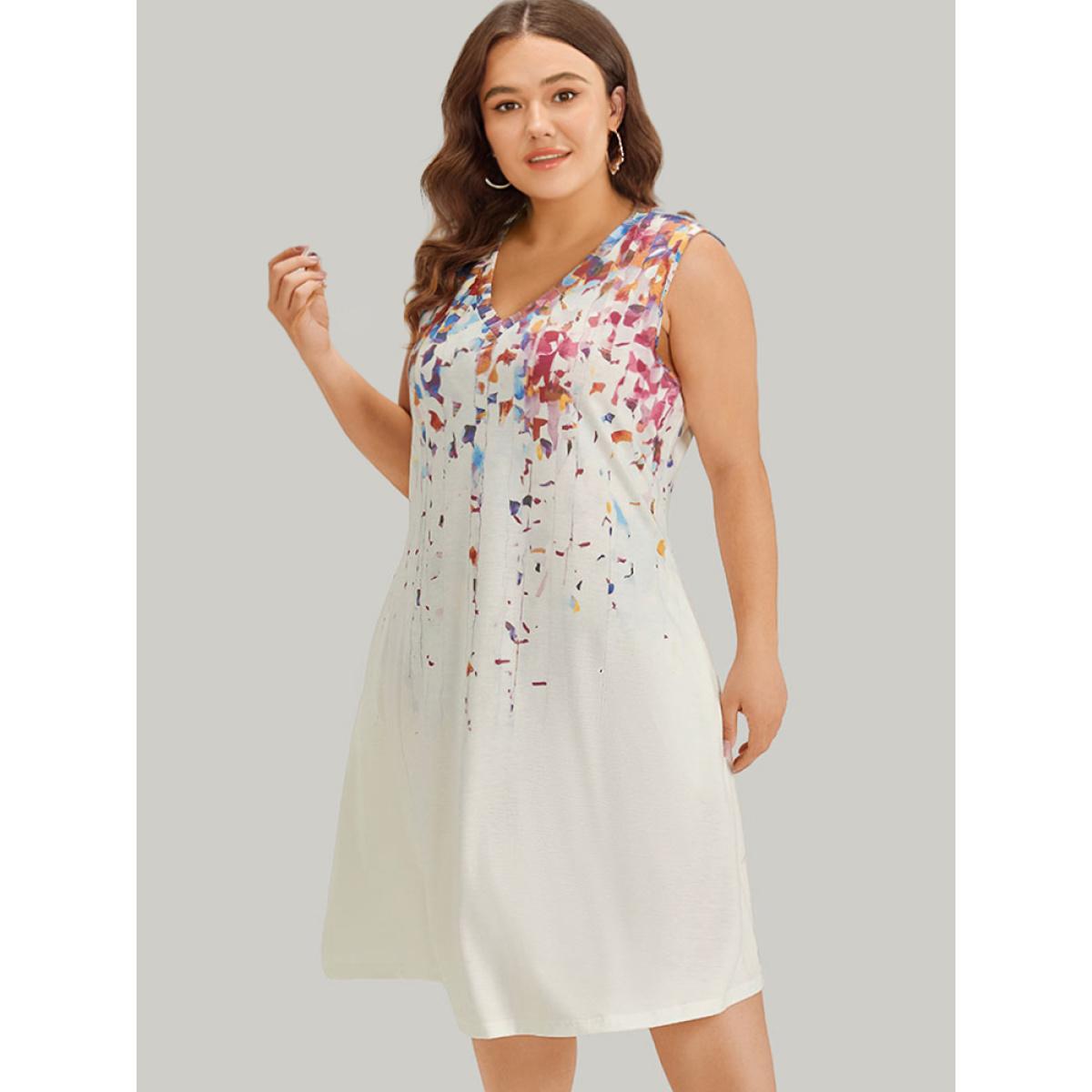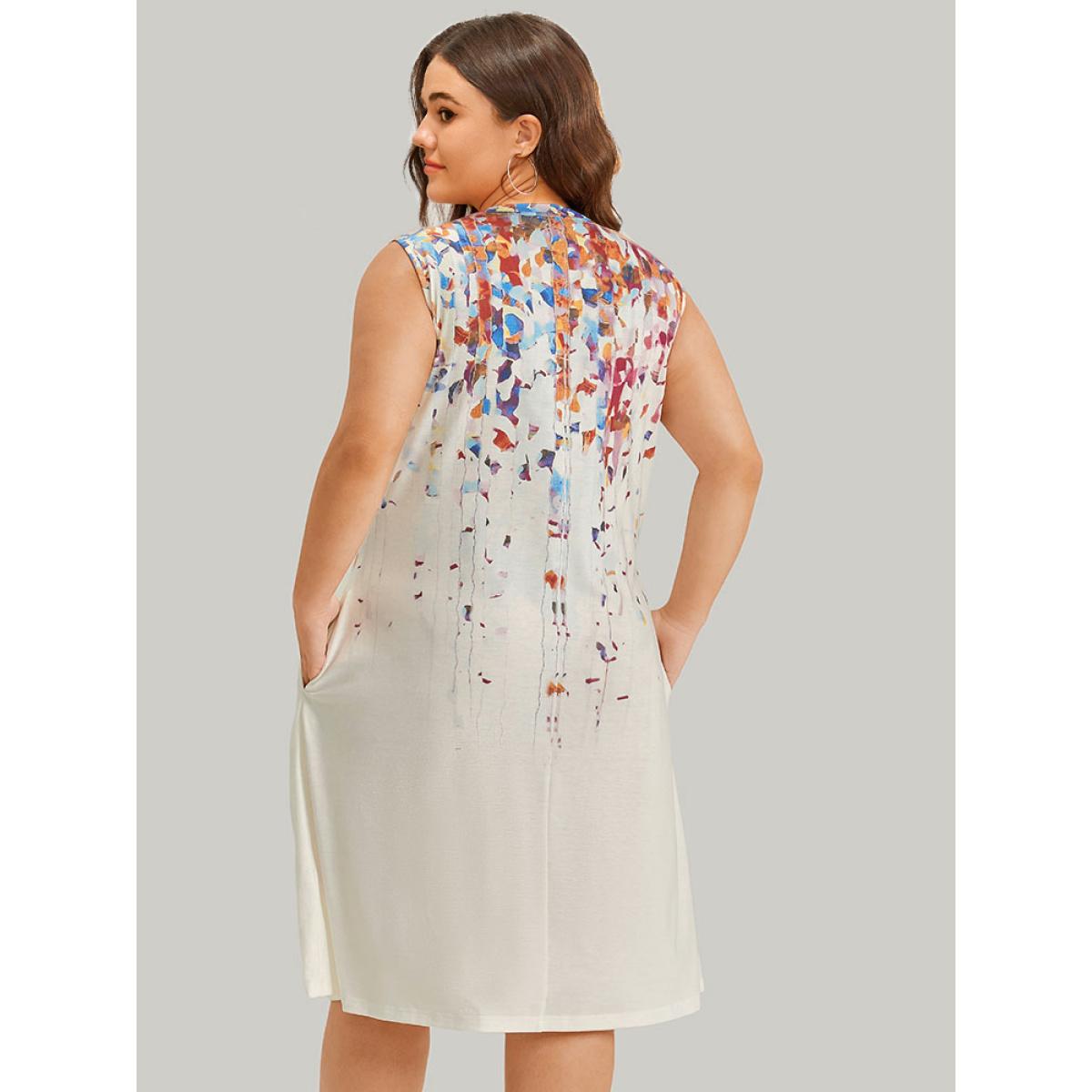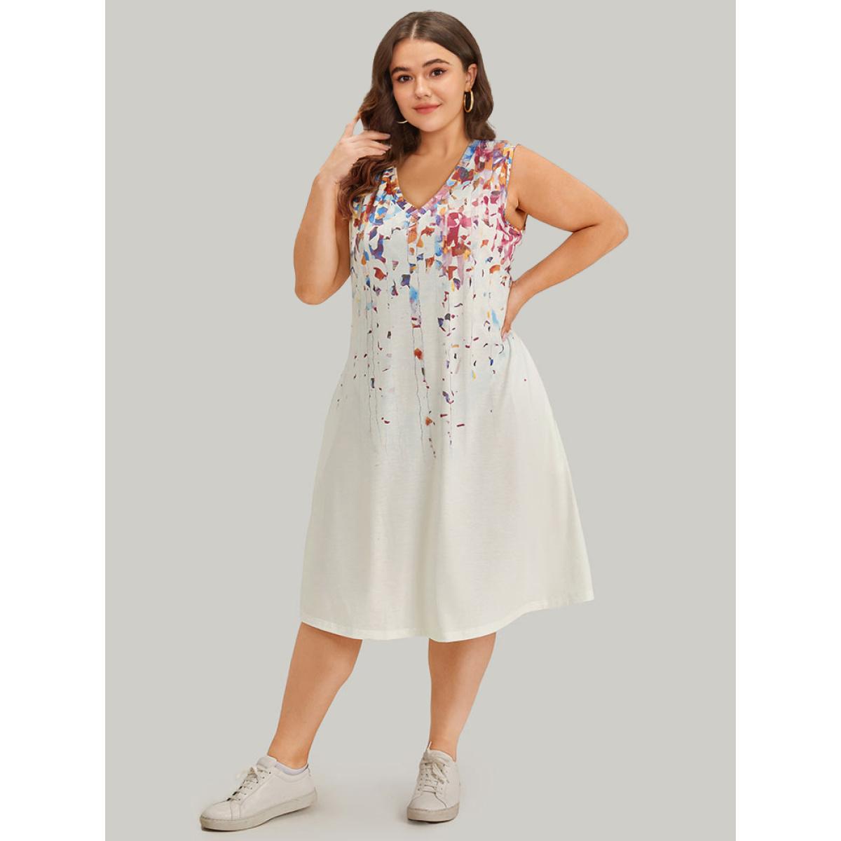 Plus Size Graphic Print Contrast Pocket V Neck Tank Dress White Women Casual Printed V-neck Sleeveless Curvy Knee Dress BloomChic 26/4X Product Image