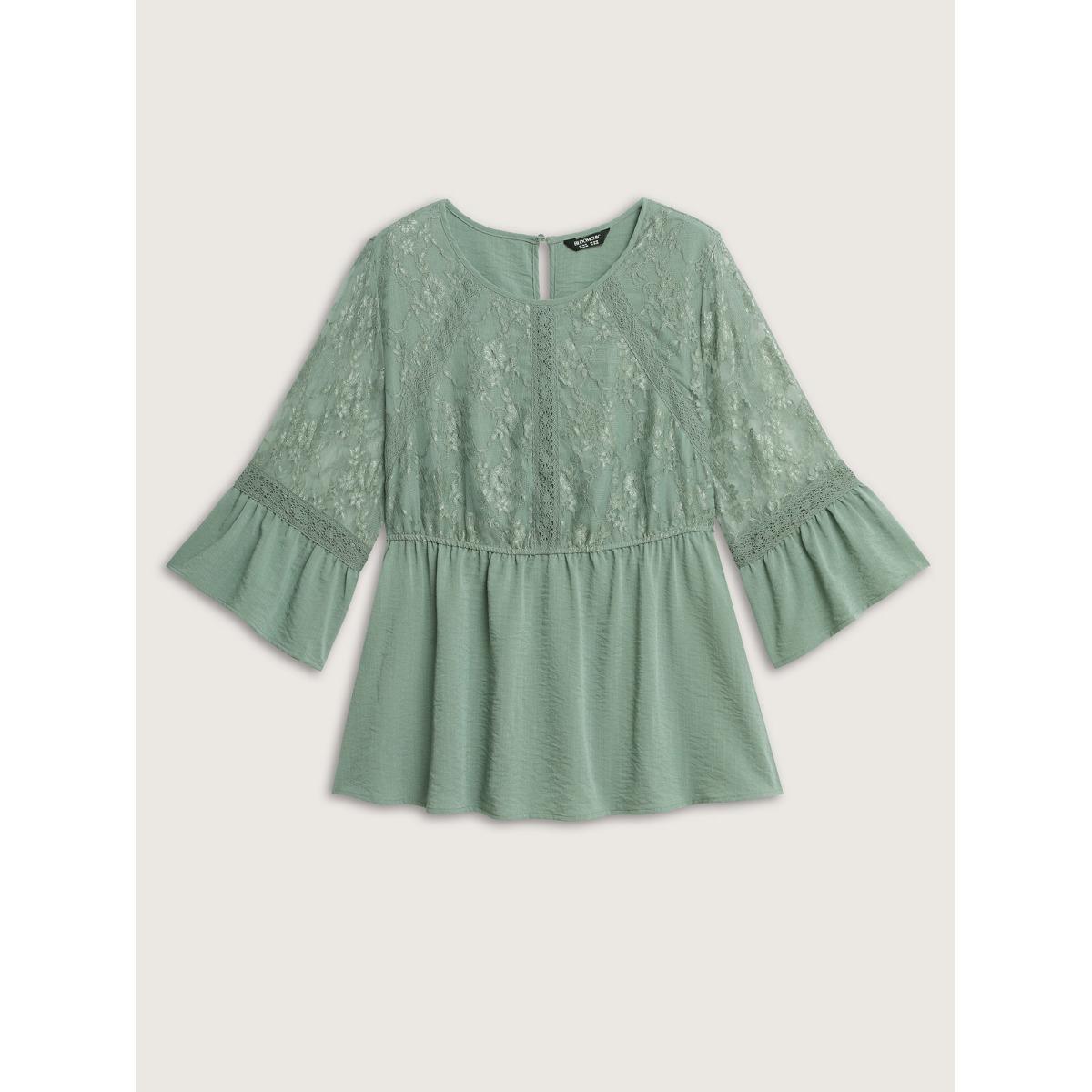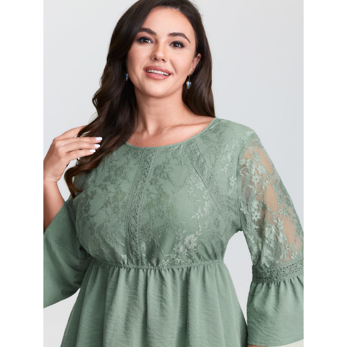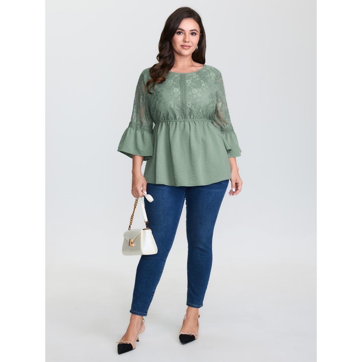 Plus Size Greenbean Textured Floral Lace Patchwork Blouse Women Romantic Elbow-length sleeve Round Neck Elegant Blouses BloomChic 28/5X